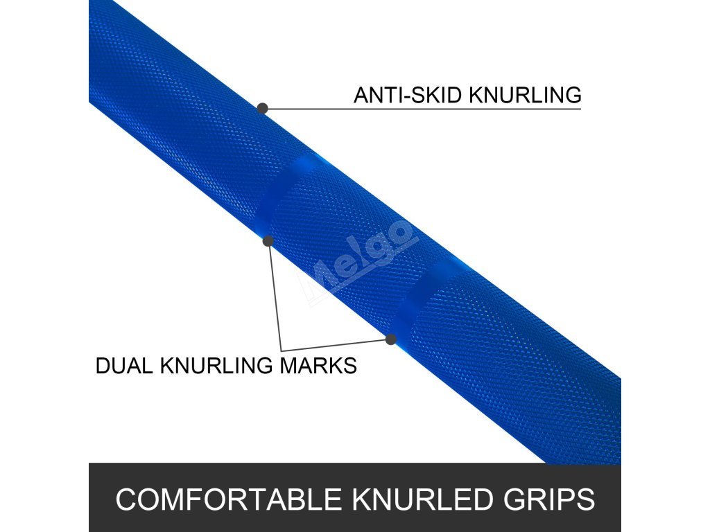Standardní vroubkování se dvěma zoubky umožňuje pohodlný a protiskluzový úchop. Značky vroubkování pomáhají kontrolovat vzdálenost mezi oběma rukama, což umožňuje lepší posilovací trénink.
