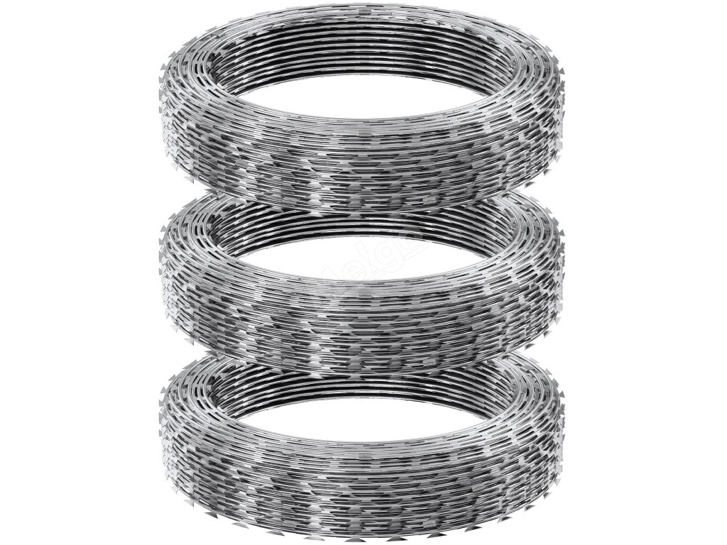 Díky spirálové konstrukci s ostrými čepelemi, které jsou těžké na dotek, nabízí tento koncertní drát výjimečnou izolaci. Lze jej použít k ochraně zdí na dvorech a farmách nebo k izolaci hranic a cest.