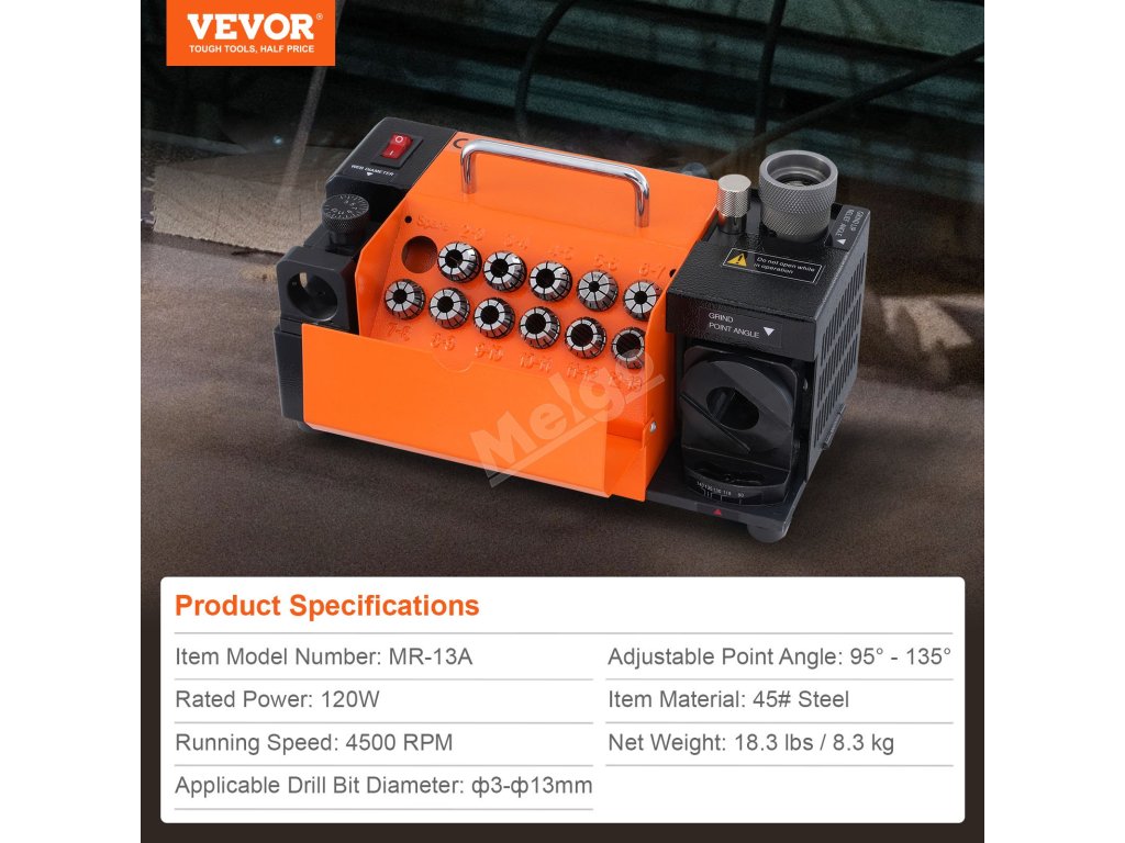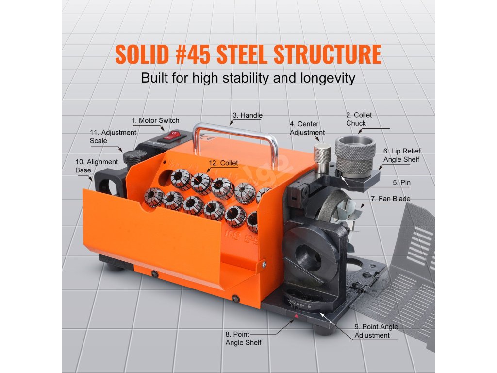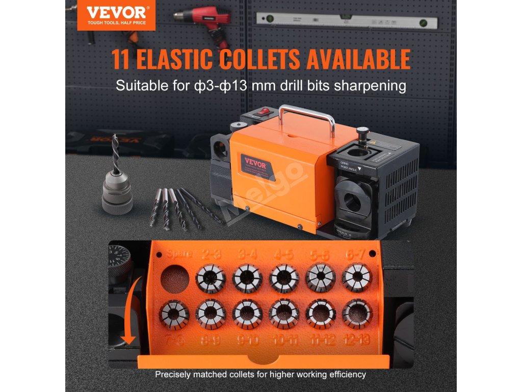 Zažijte přesnost a efektivitu s ostřičem vrtáků VEVOR! S nastavitelným úhlem hrotu od 95° do 135° a 11 sběrači zajišťuje přesné a stabilní ostření vrtáků o průměru od f3 do f13. Pro optimalizaci účinnosti si můžete vybrat mezi brusnými kotouči CBN a SDC pro různé materiály.