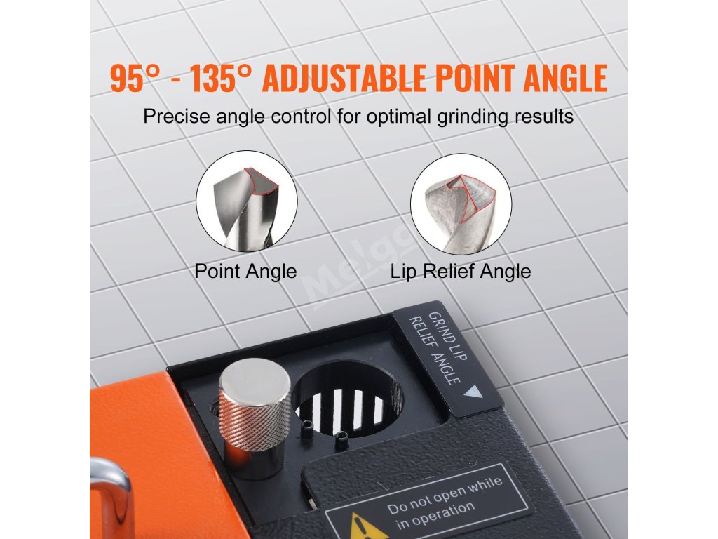 Přesné broušení je snadné! Naše bruska na vrtáky umožňuje přesné broušení hrotu a úhlu odlehčení hrany. A úhel hrotu lze nastavit v rozsahu 95° až 135°, což lze účinně sladit s materiálem vrtaného otvoru a rychlostí otáčení.