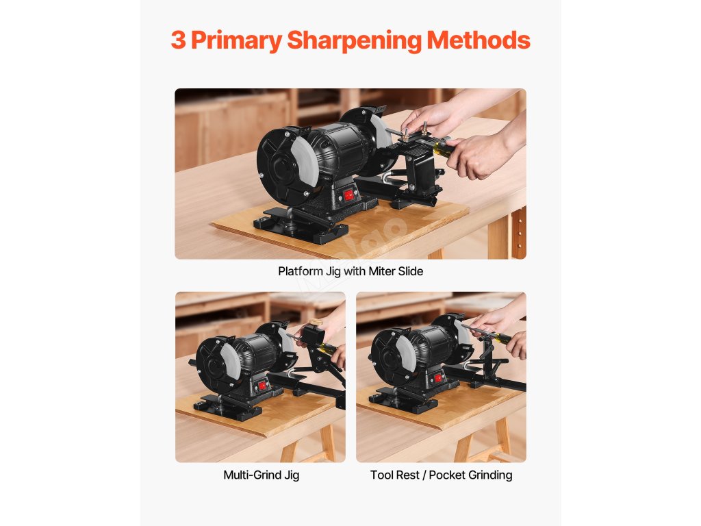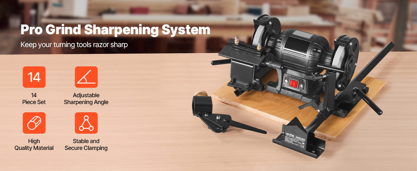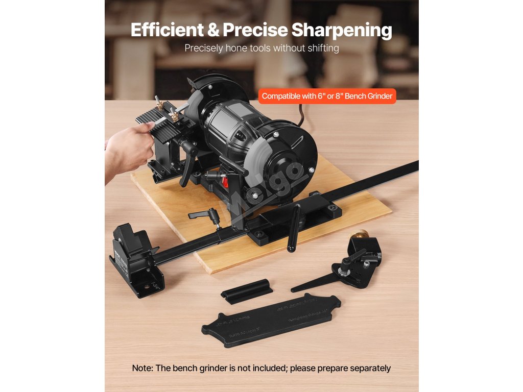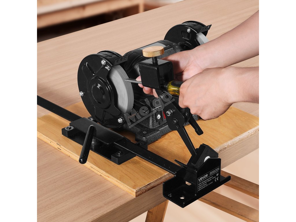 Ostřicí systém VEVOR Pro Grind obsahuje kompletní ostřicí sadu, která je kompatibilní s 6" a 8" stolními bruskami. Je ideální pro broušení dlát, dlát, dělících nástrojů, řezbářských nástrojů a nástrojů na soustružení dřeva. Účinně naostřete své nástroje a rychle obnovte jejich ostrost.