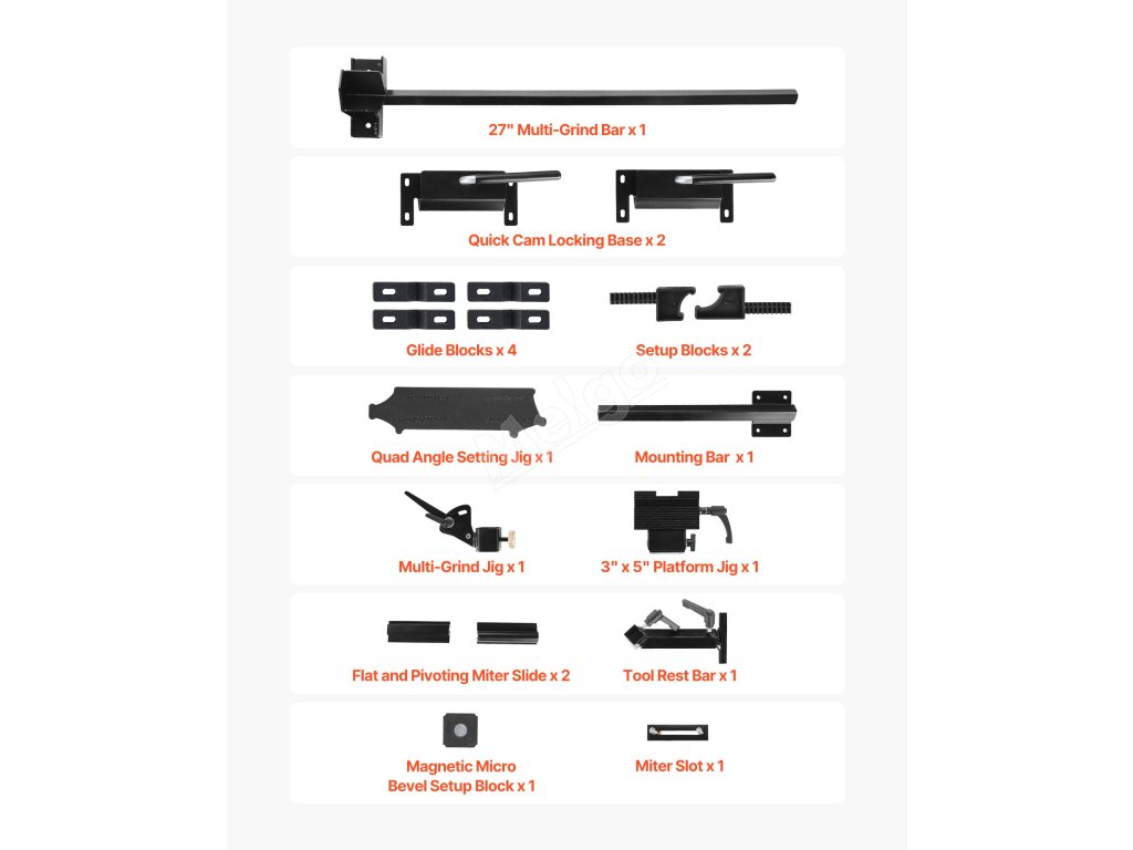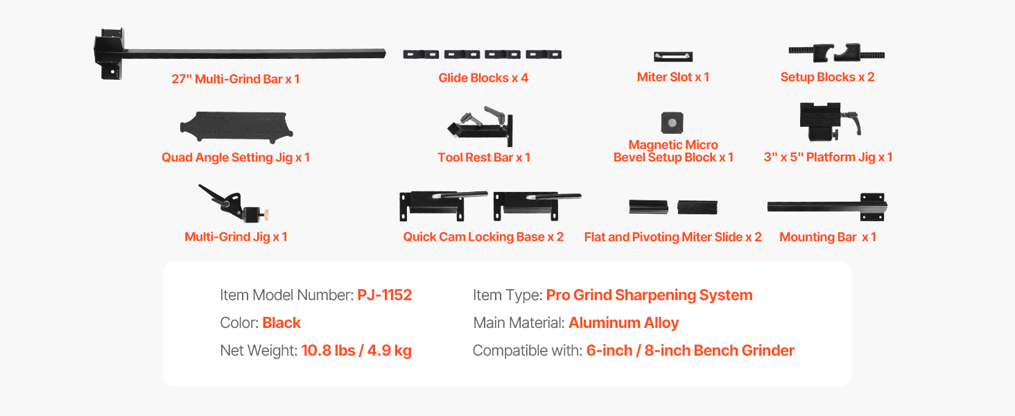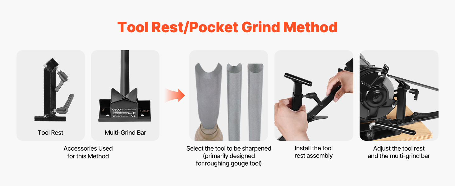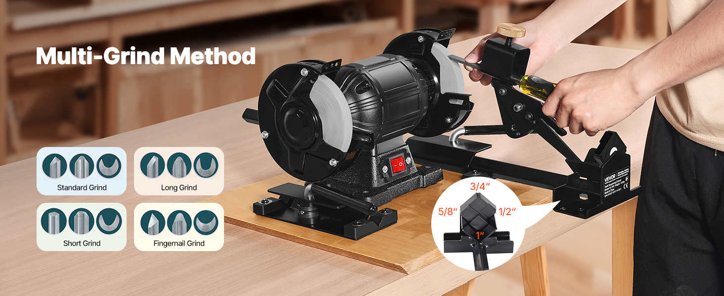 Ostřicí systém VEVOR Pro Grind obsahuje kompletní ostřicí sadu, která je kompatibilní s 6" a 8" stolními bruskami. Je ideální pro broušení dlát, dlát, dělících nástrojů, řezbářských nástrojů a nástrojů na soustružení dřeva. Účinně naostřete své nástroje a rychle obnovte jejich ostrost.