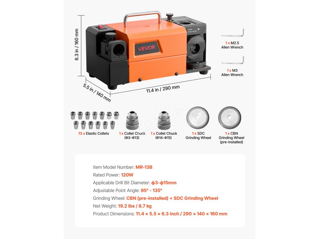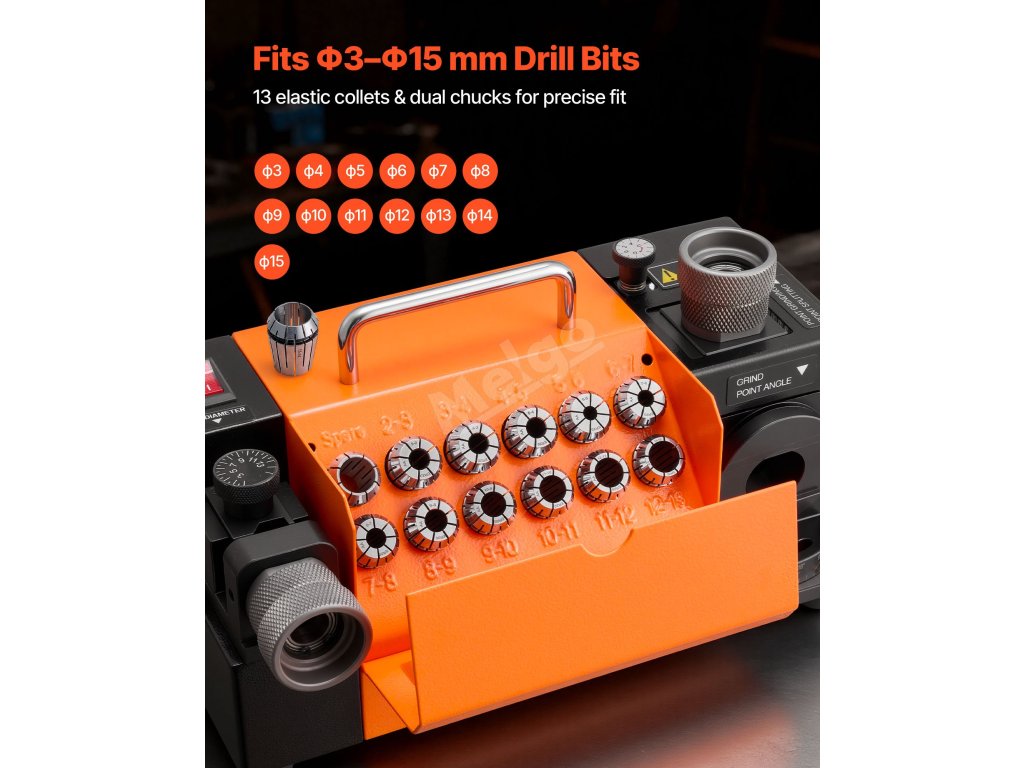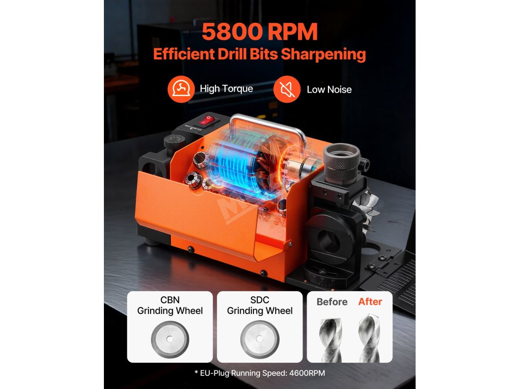 Profesionální bruska na vrtáky VEVOR 3-15 mm kombinuje přesné broušení, flexibilní nastavení úhlu, brusný kotouč CBN + SDC a vysokorychlostní motor s 4600 ot/min. Rychle obnovuje ostrost vrtáků, takže vrtání je hladší, rychlejší a efektivnější.