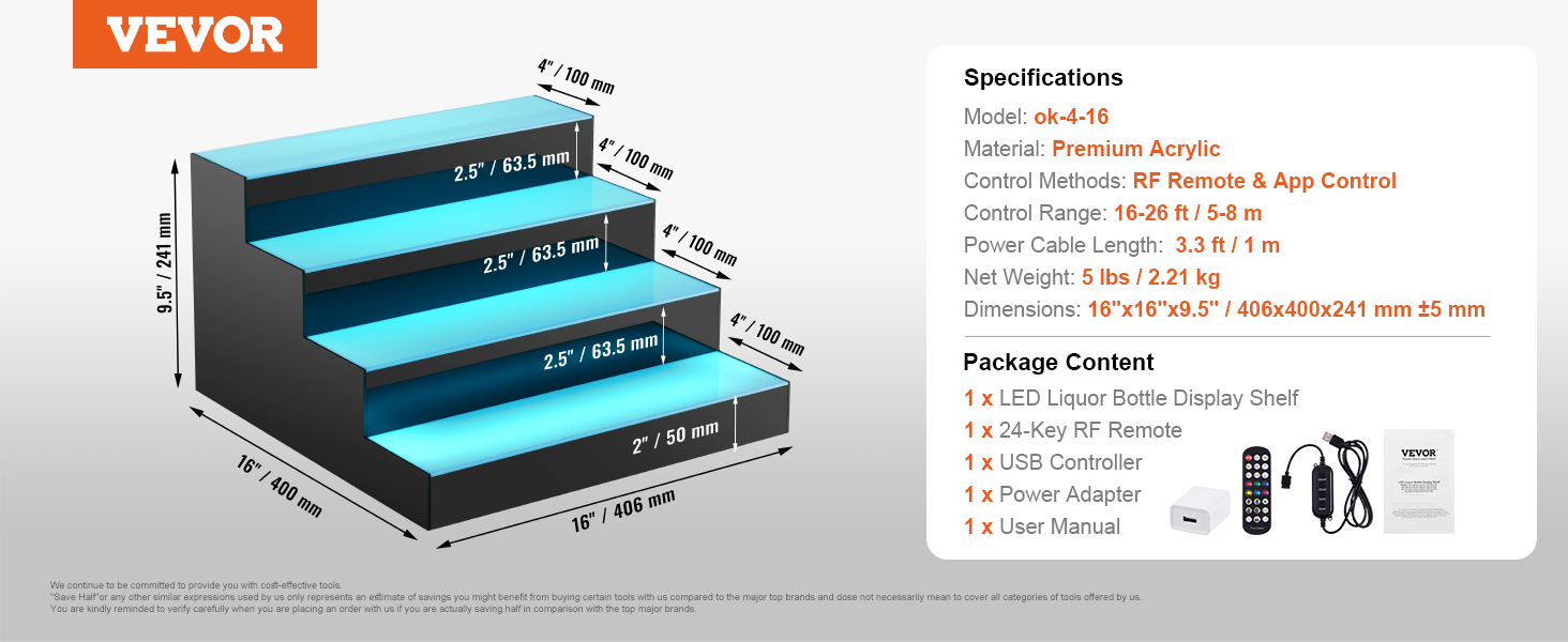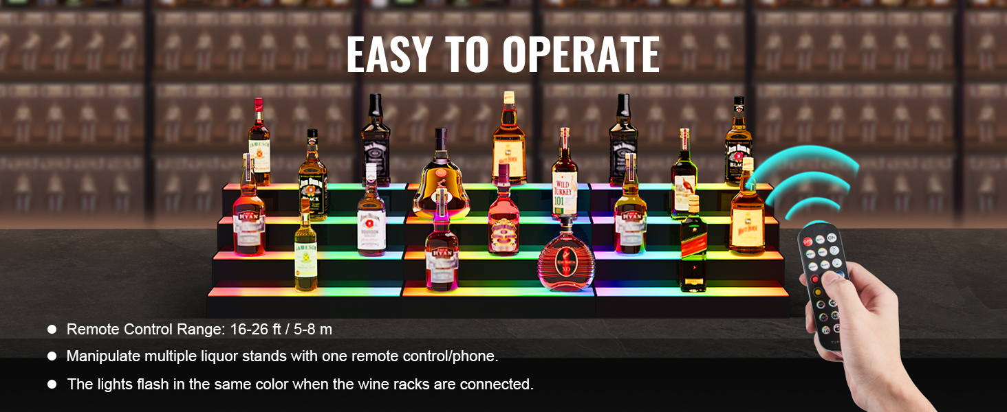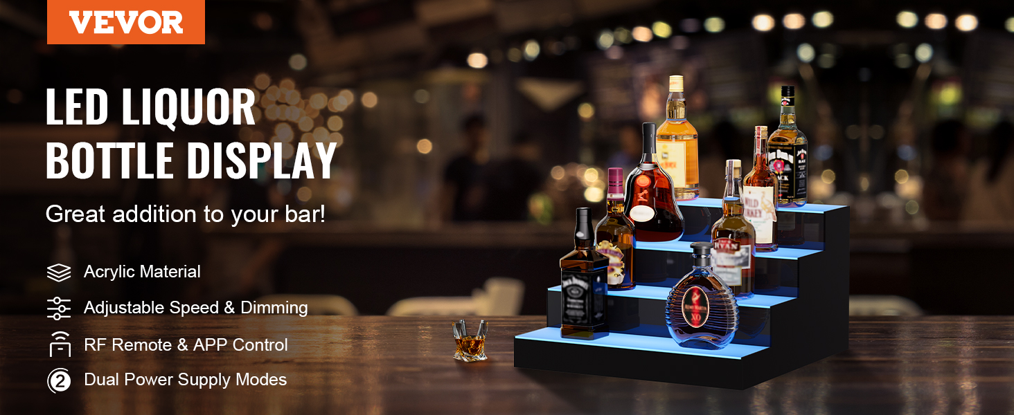 Osvětlená akrylová police na láhve 4 úrovně 16 inch, rf+app, rgb