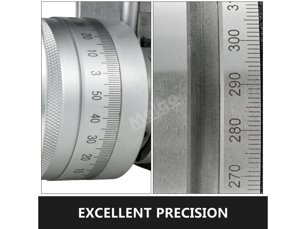 Ciferník je rozdělen na celkem 360 stupňů. Rukojeť má 4 stupně na otáčku. Minimální stupnice může být přesná na 10 sekund.