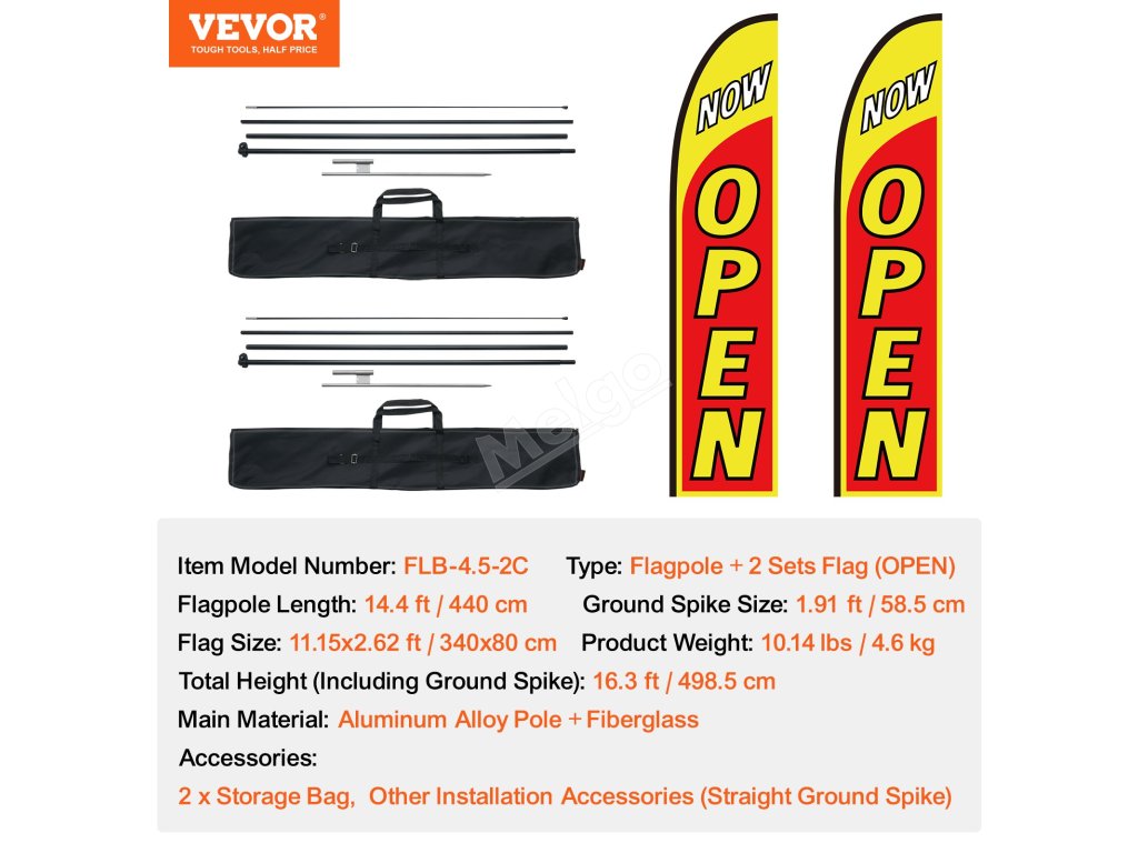 Otevřené reklamní vlajky 2 ks s tyčemi 2 ks a kolíky 2 ks, 16.3 FT
