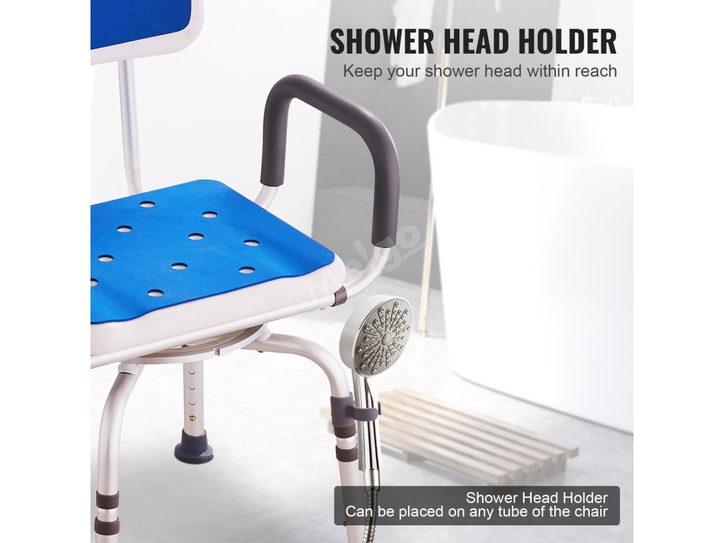 Otočná sprchová židle 360° s opěrkami, nastavitelná nosnost 400lbs