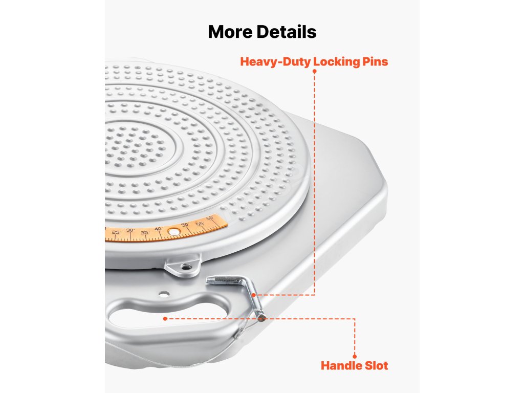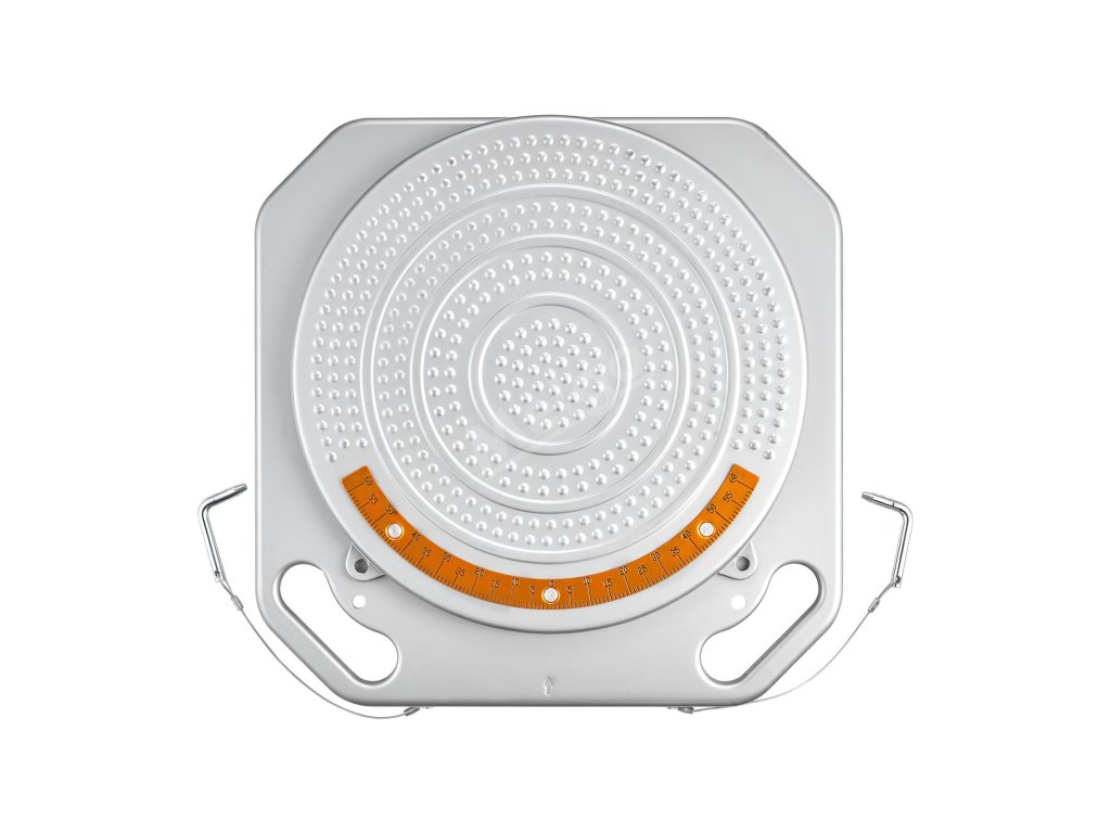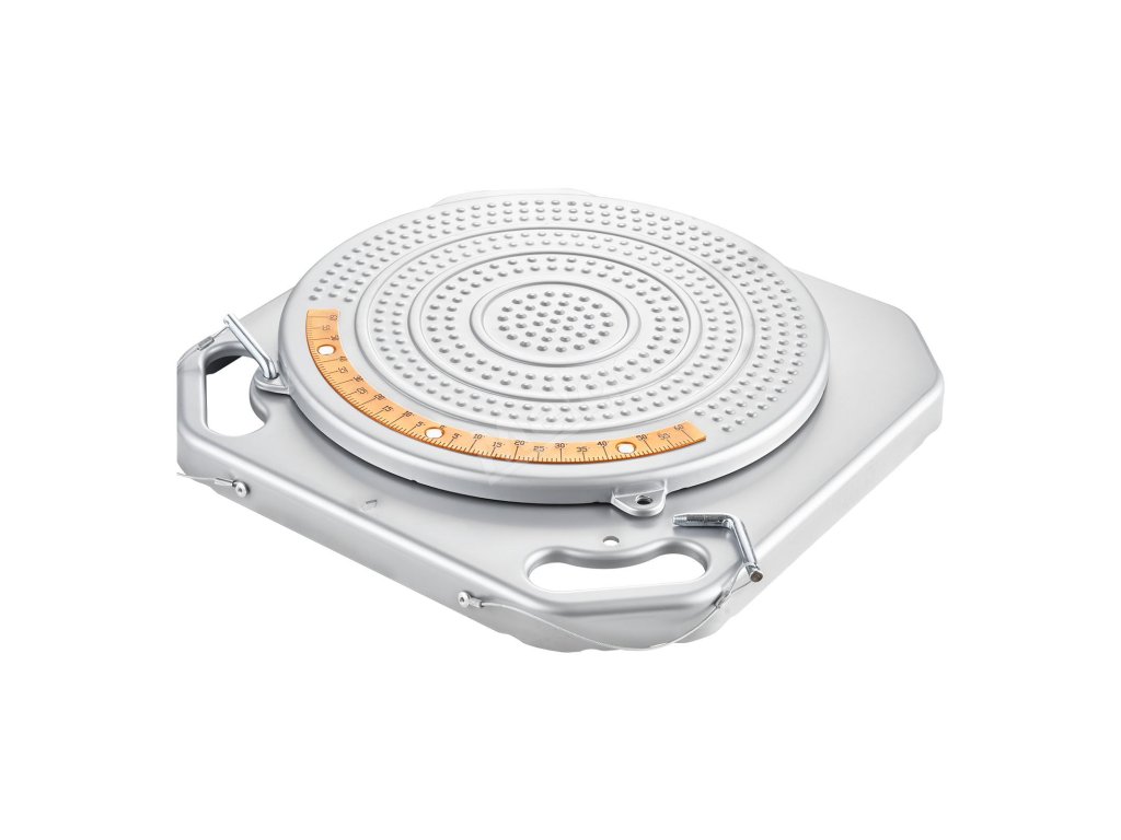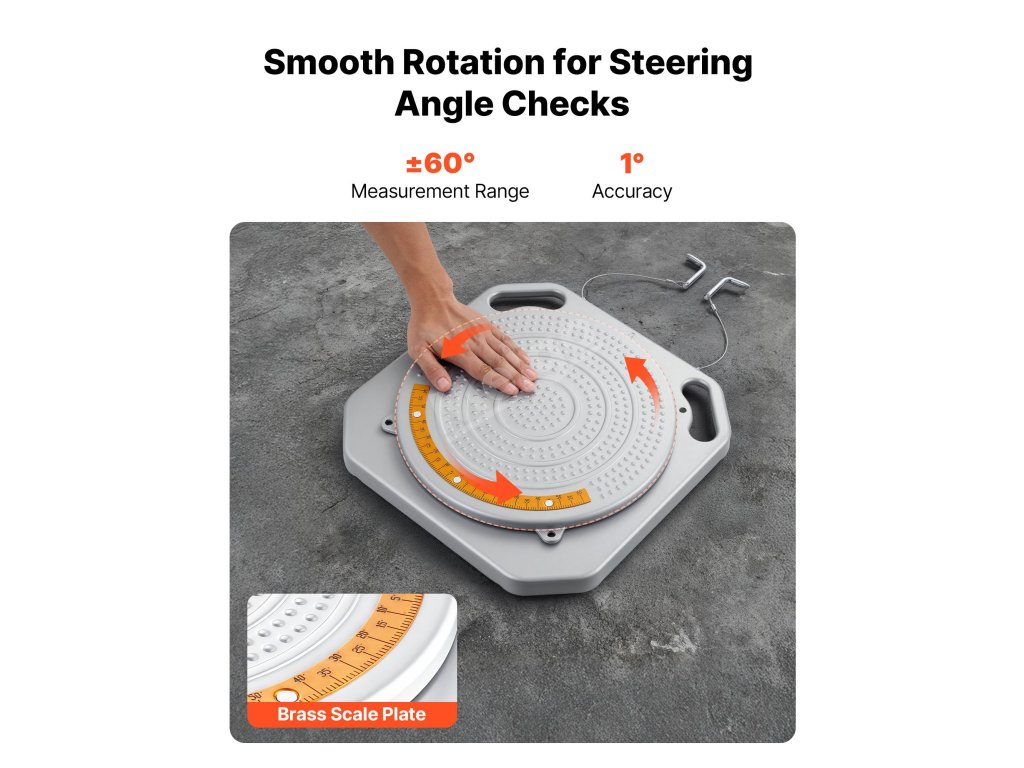 Tyto vyrovnávací desky s rozsahem výkyvu 60° (30° vlevo a vpravo) pokrývají úhly řízení většiny osobních vozidel. Průhledné mosazné číselníky zajišťují dlouhodobou viditelnost pro přesné měření sbíhavosti a odklonu.