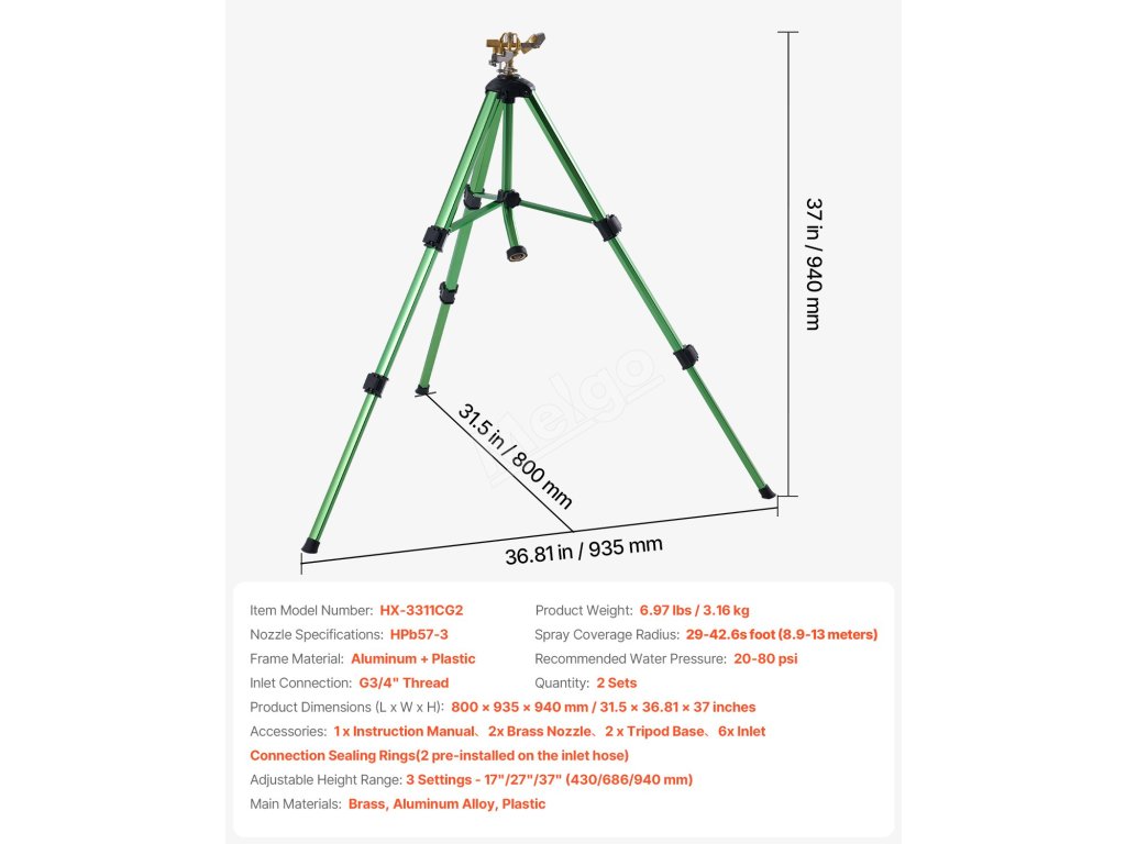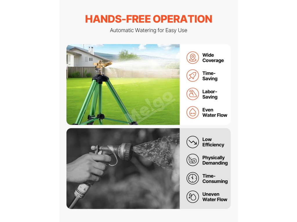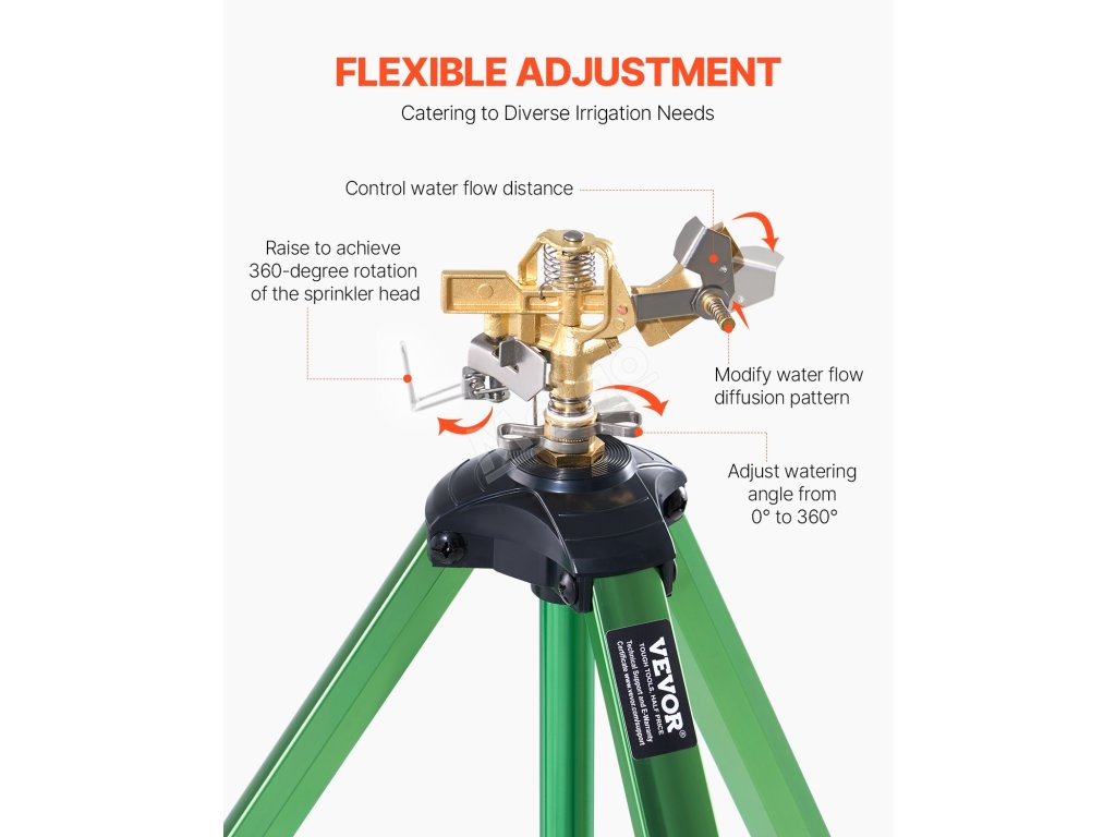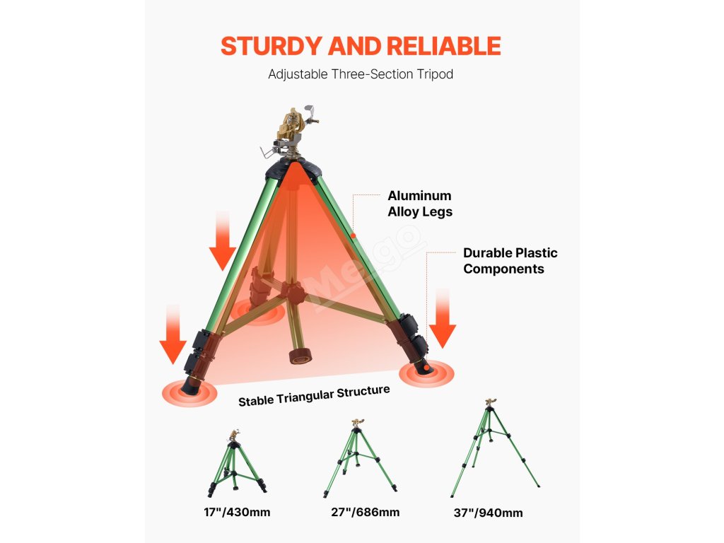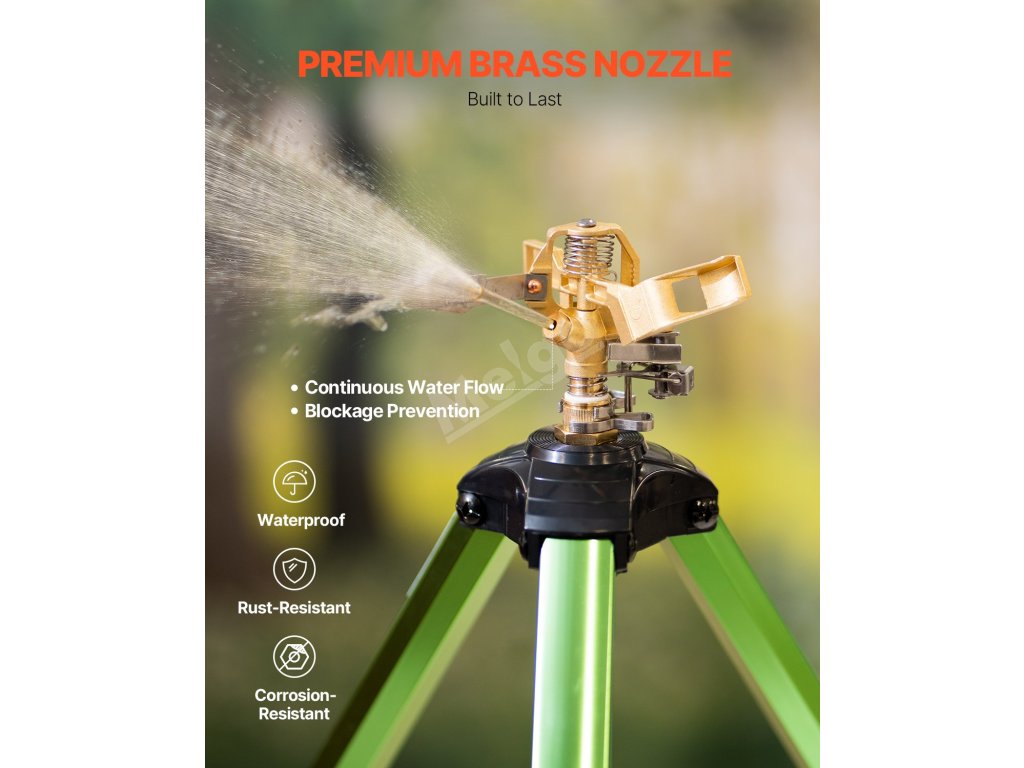 Tento postřikovač kombinuje kvalitní mosaznou postřikovací hlavu se stativem a je vodotěsný a odolný proti korozi pro dlouhotrvající použití. Zavlažuje plochy o rozloze až 5 539 čtverečních stop, čímž zvyšuje účinnost zavlažování. Nastavitelná hlava, zámky nohou a tříúrovňové nastavení výšky usnadňují instalaci a obsluhu!