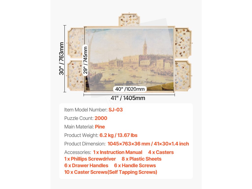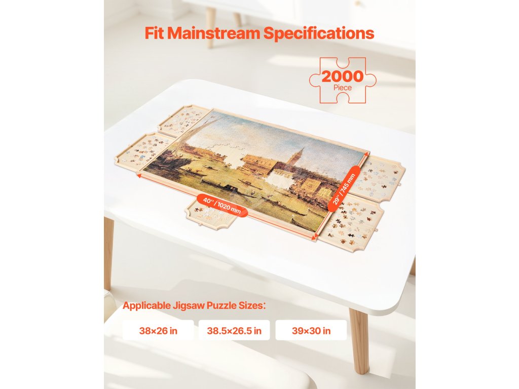 Naše desky na puzzle se zásuvkami a kryty mají rozměry vhodné pro většinu skládaček o 2000 dílcích a nabízejí snadný a efektivní způsob vytváření krásných skládaček.