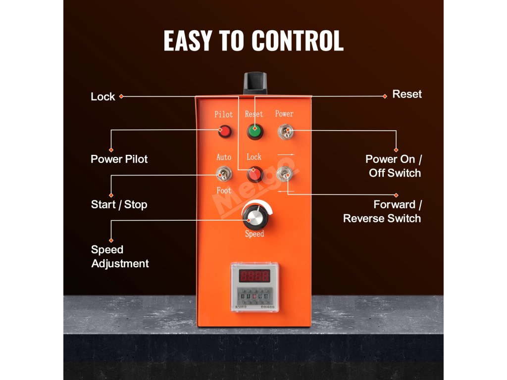 k dispozici jsou 2 režimy ovládání - ovládací skříňka a nožní spínač: 1. Zvolte automatický režim, který udržuje nepřetržité otáčení při nastavených otáčkách. 2. 2. Zvolte automatický režim. Zvolte nožní režim a pomocí nožního spínače ovládejte zastavení/spuštění a otáčení válců v malém rozsahu.