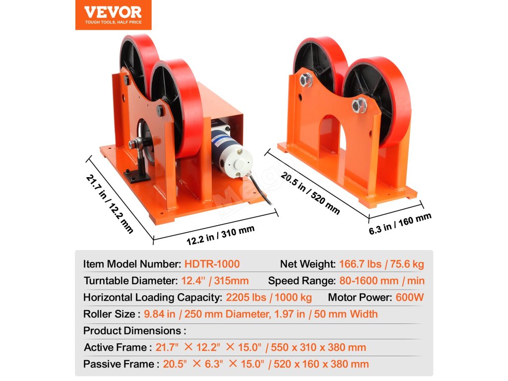Zvyšte úroveň svých svařovacích projektů a dosáhněte bezchybných výsledků. Soustružnický válec VEVOR je vybaven 600W motorem s vysokým točivým momentem pro efektivní soustružení, který podporuje nosnost 2205 lbs. 9.pU válec o průměru 84 palců nabízí vnitřní a vnější otvory pro obrobky o průměru 25-800 mm a 200-1400 mm.