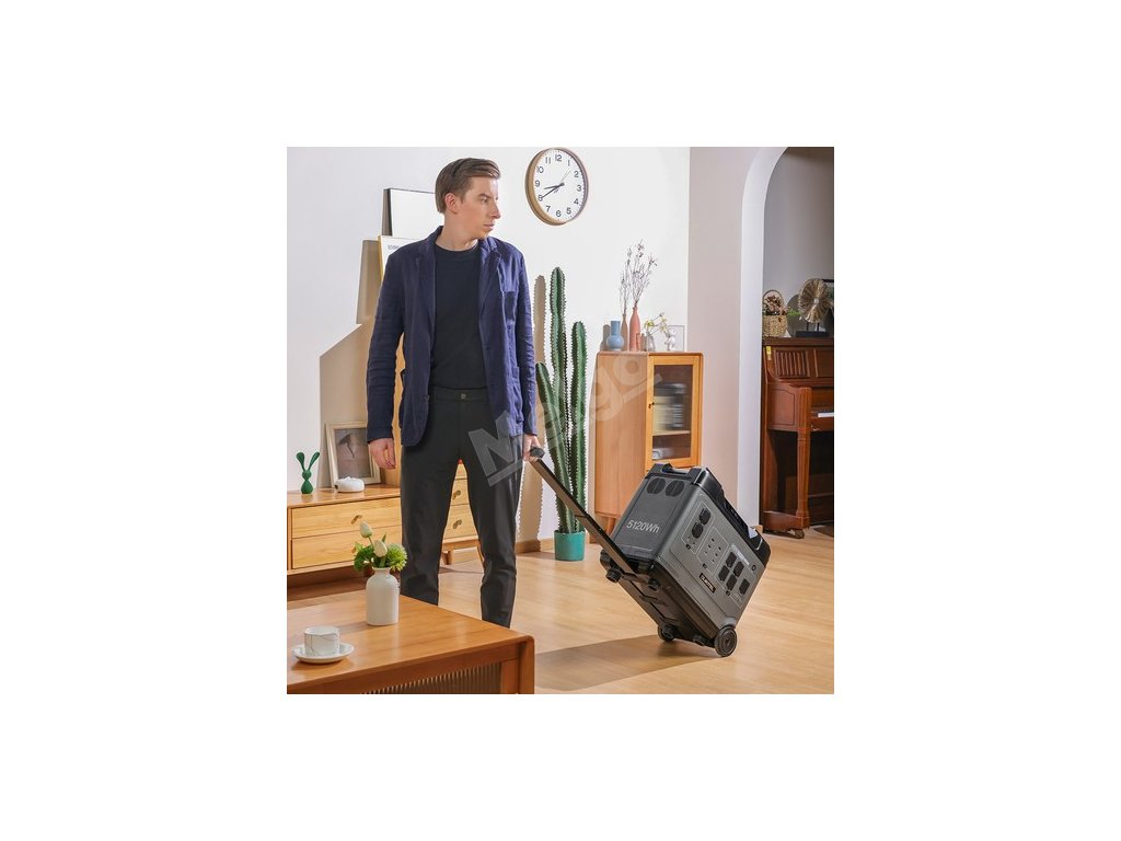 | Specifikace | Kapacita: 5120Wh Baterie: LiFePO4 Životnost cyklu: více než 5000 cyklů UPS: Výstup: 4000 W, čistá sinusoida, 5 x AC 220-240 V Stejnosměrný výstup: 2 x USB-A 12W, 2 x USB-A QC3.0 rychlé nabíjení 18W, 2 x USB-C 100W PD, 2 x 12V/3A Letecká zásuvka: 1 x 24V/10A Zapalovač cigaret: Max. 1800W, AC 220-240V, Max. 10A Solární nabíjení: max. 1000 W, 12-120 V, 15 A Nabíjení v autě: 12V/8A nebo 24V/10A |