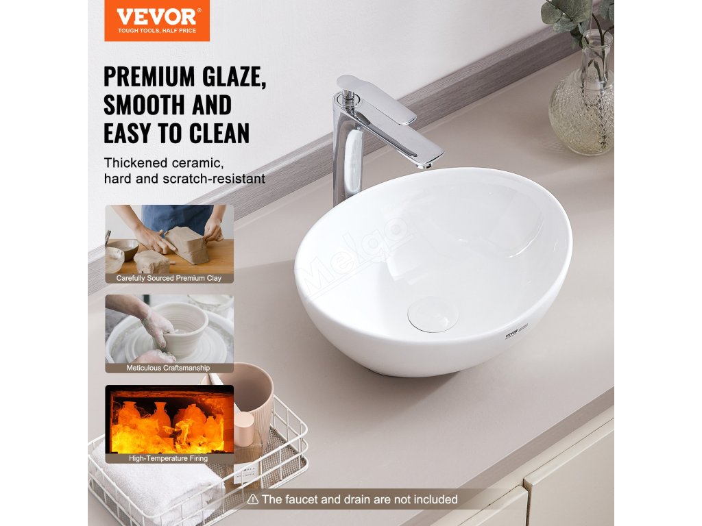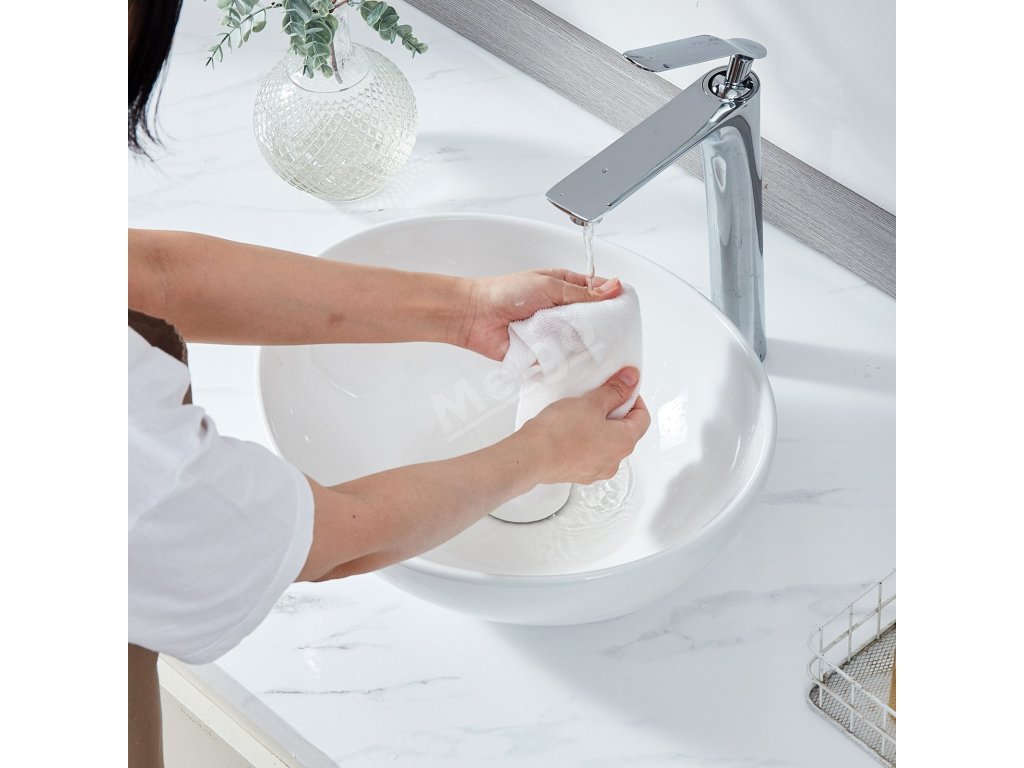 Toto umyvadlo je vyrobeno z vysoce kvalitní keramické hlíny, která byla zcela zeskelnatělá vypálením při vysoké teplotě, takže má tvrdou strukturu, která časem nežloutne. Povrch je hladký a měkký s nízkou nasákavostí, takže je odolný vůči skvrnám a snadno se udržuje.