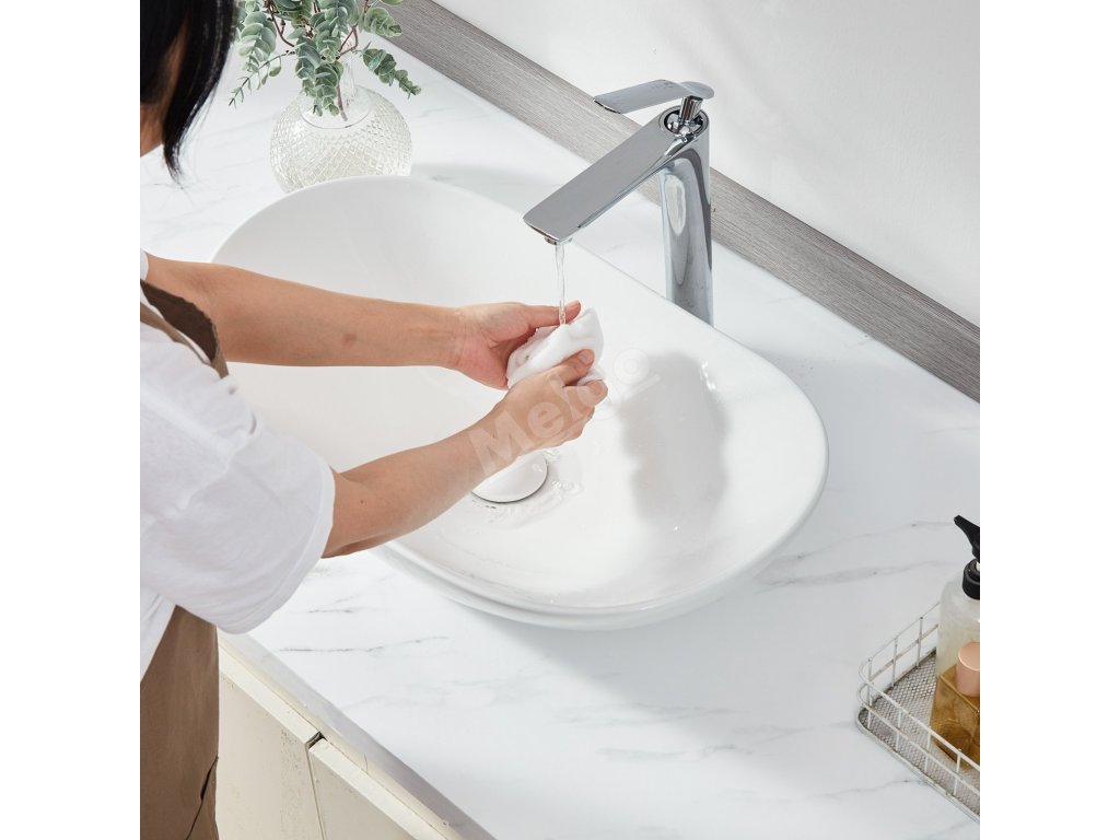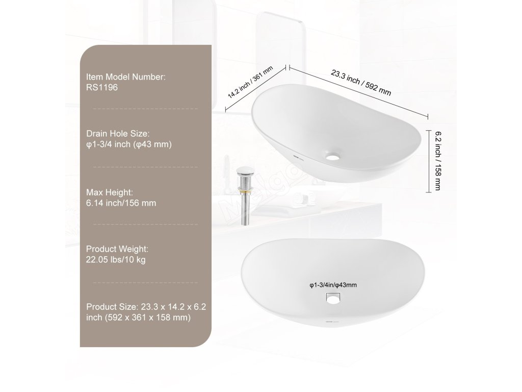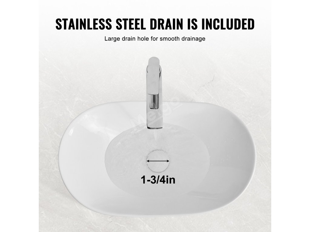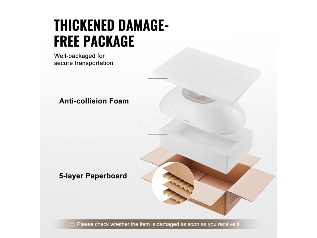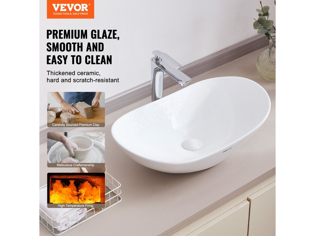 Tento dřez s minimalistickým oválným tvarem a decentní bílou barvou vyzařuje krásu a luxus. Doplní různé styly interiérů a mezi majiteli domů je oblíbené pro použití v koupelnách a toaletních stolcích. Hodí se také do hotelů, karavanů, restaurací, kancelářských budov a dalších prostor.
