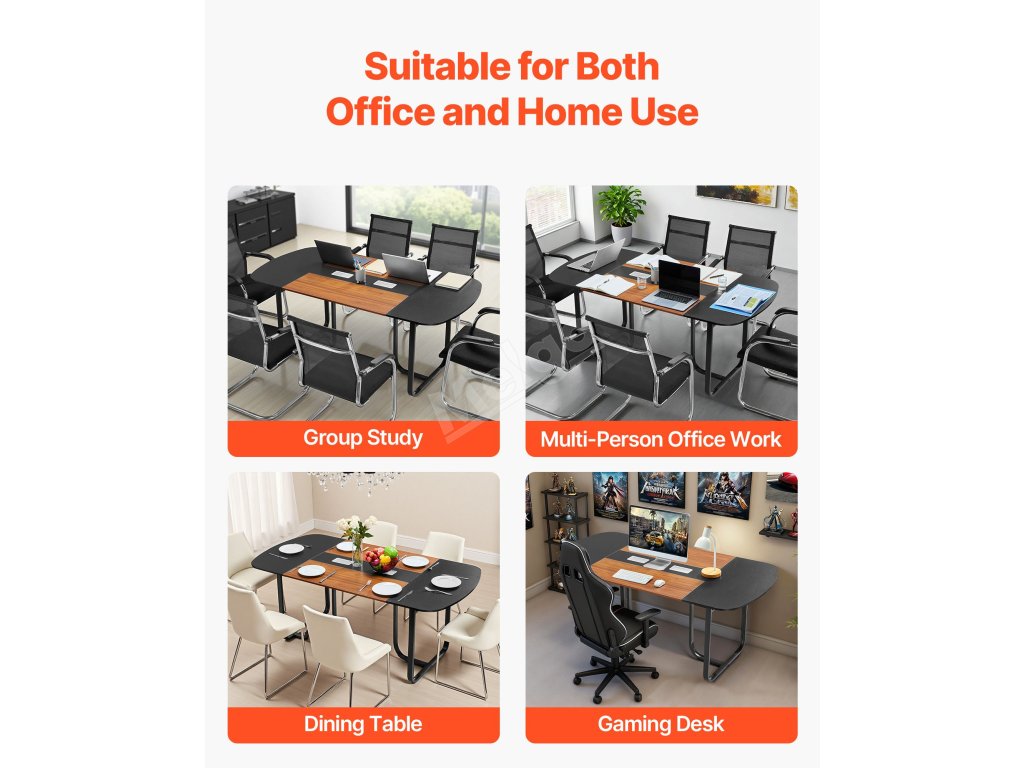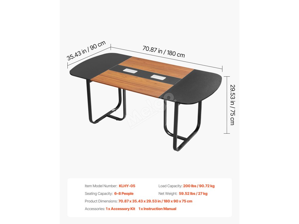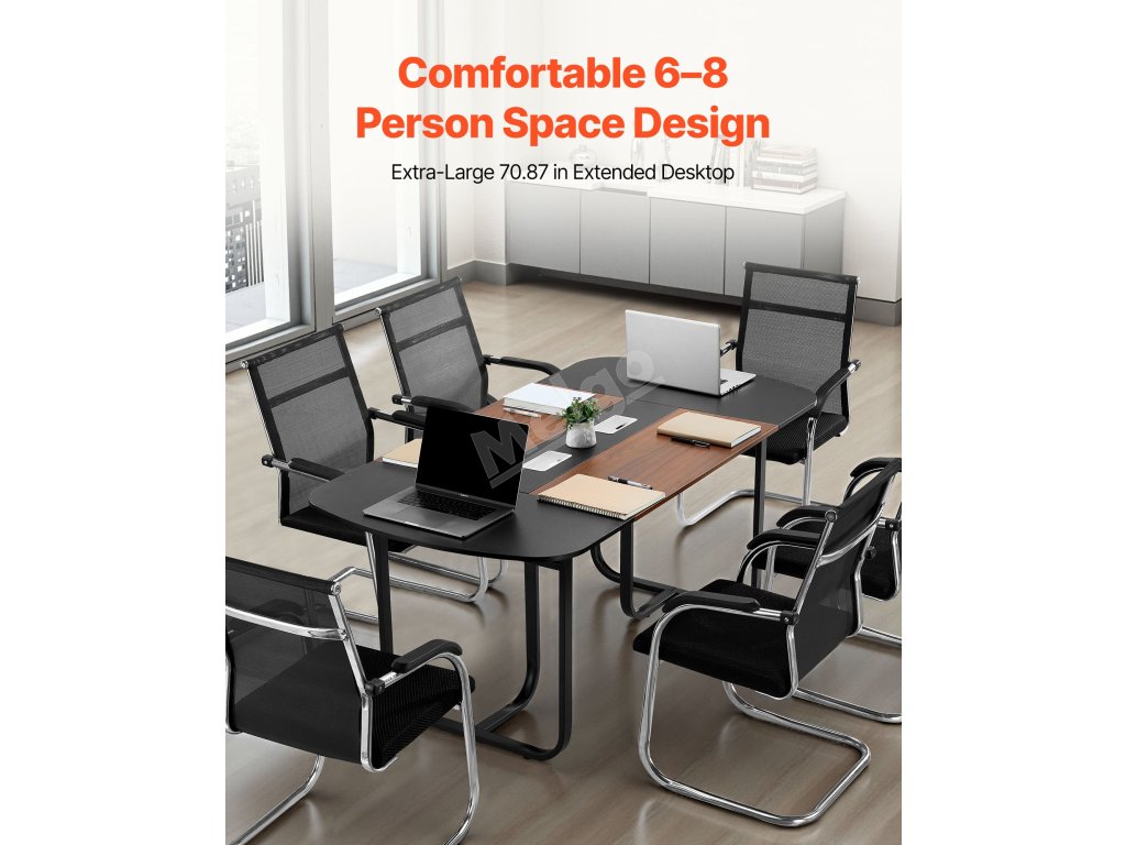 Tento konferenční stůl se standardní 6stopou deskou pohodlně pojme až 6-8 osob. Vytváří prostorné prostředí pro malé nebo středně velké schůzky, vyhovuje potřebám týmových diskusí, školení a videokonferencí.
