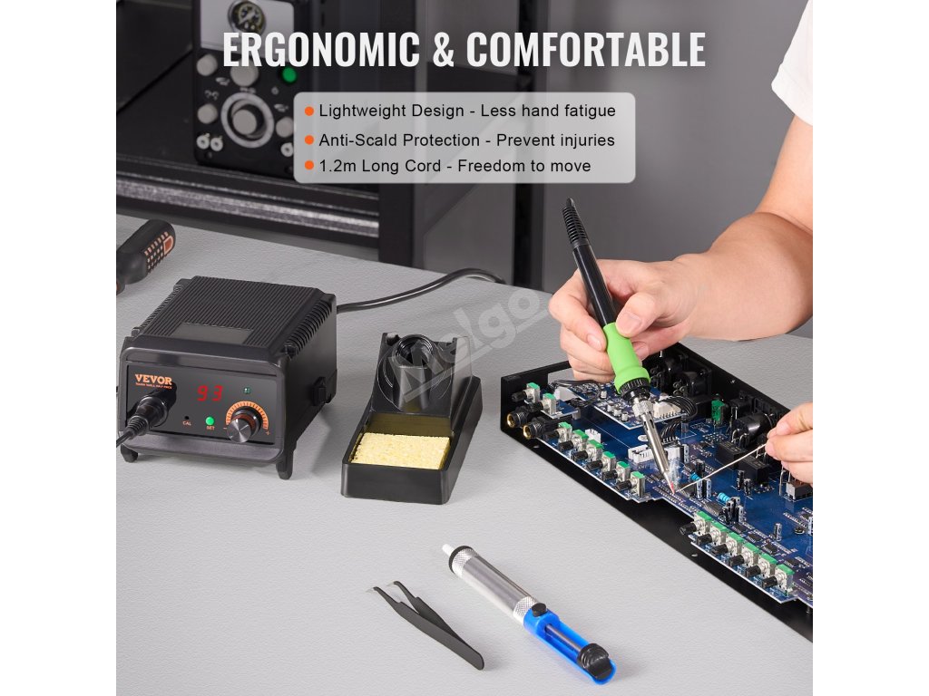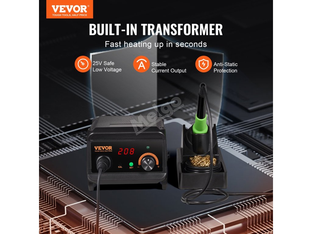 Zabudovaný profesionálny transformátor pre bezpečnejšie a efektívnejšie spájkovanie. Navrhnutý s nízkym napätím 25 V na zvýšenie bezpečnosti, stabilným prúdom s minimálnymi výkyvmi a ochranou komponentov citlivých na ESD na predĺženie životnosti zariadenia.