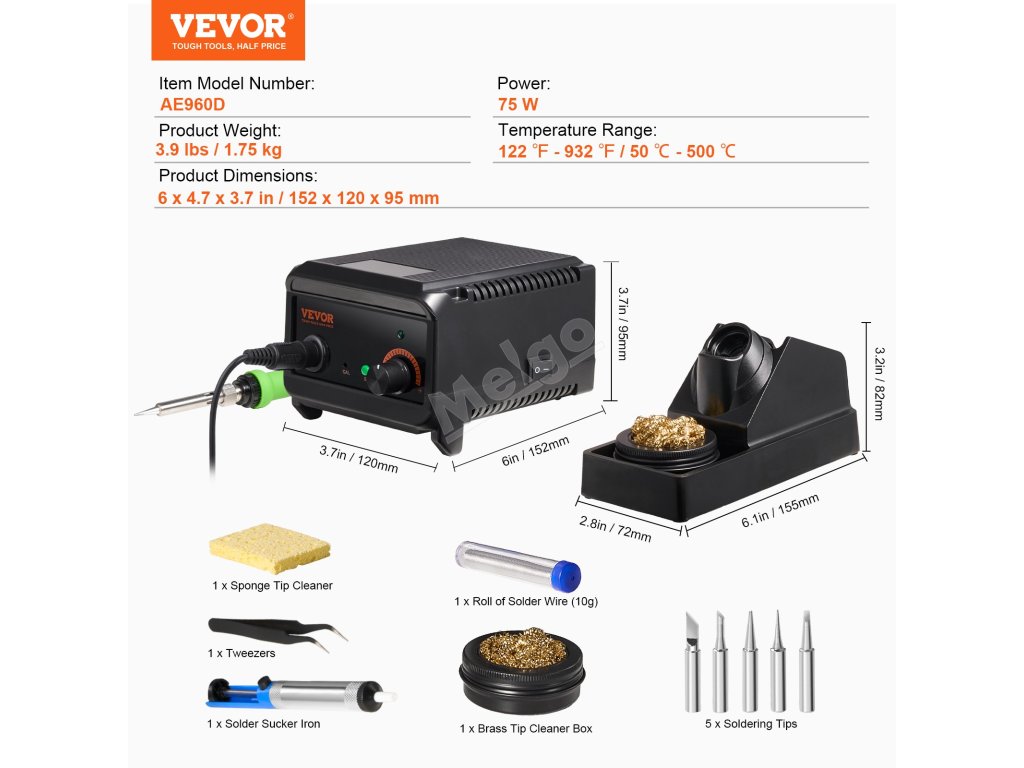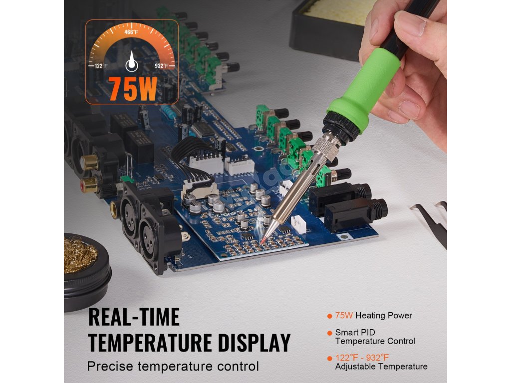 Inteligentná regulácia teploty pre rýchlejšie a presnejšie zahrievanie! Vďaka vysokému výkonu 75 W, regulácii teploty PID a nastaviteľnej teplote 122℉-932℉ táto spájkovacia stanica zabezpečuje efektívne spájkovanie, ideálne na opravy dosiek plošných spojov, opravy šperkov, projekty pre domácich majstrov atď.