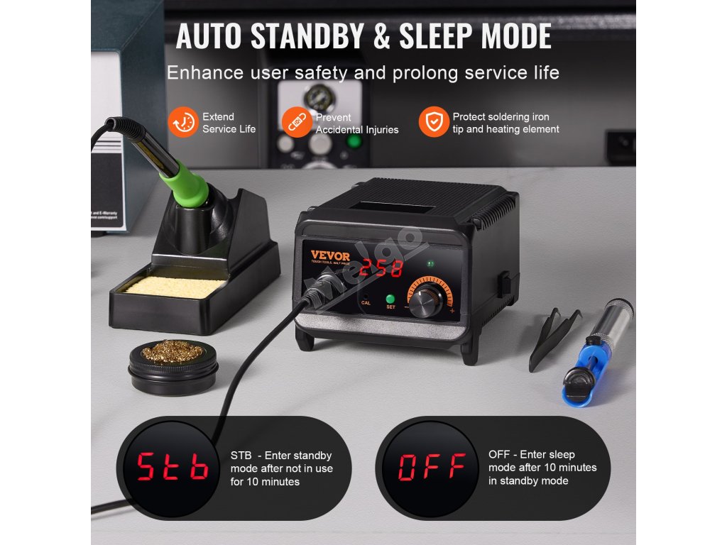 Automatický pohotovostný režim a režim spánku zaisťujú bezpečnosť vašej spájkovacej práce! Premyslené funkcie nielenže chránia vykurovacie teleso a predlžujú životnosť stanice, ale pomáhajú aj predchádzať náhodným popáleninám, čím poskytujú bezpečnejšie a efektívnejšie spájkovanie.