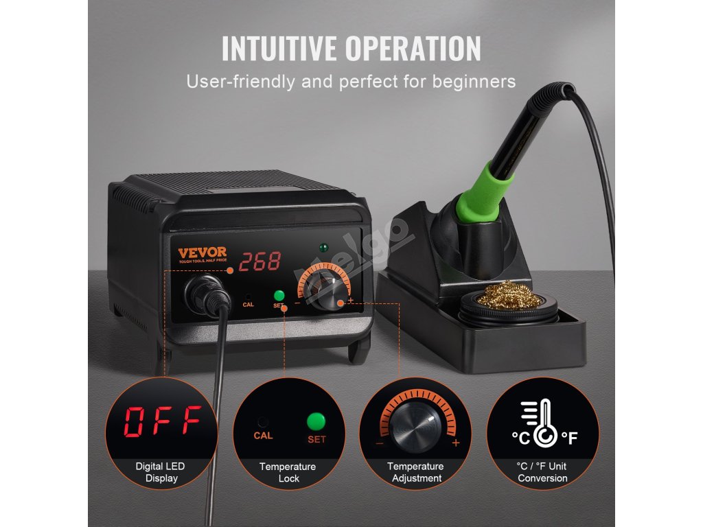 Táto digitálna spájkovacia stanica je vybavená ľahko použiteľným gombíkom na nastavenie teploty a prehľadným LED displejom na jednoduché sledovanie. Je vybavená funkciou uzamknutia teploty, kalibráciou a prevodom ℃/℉ a je navrhnutá tak, aby spĺňala rôzne potreby.