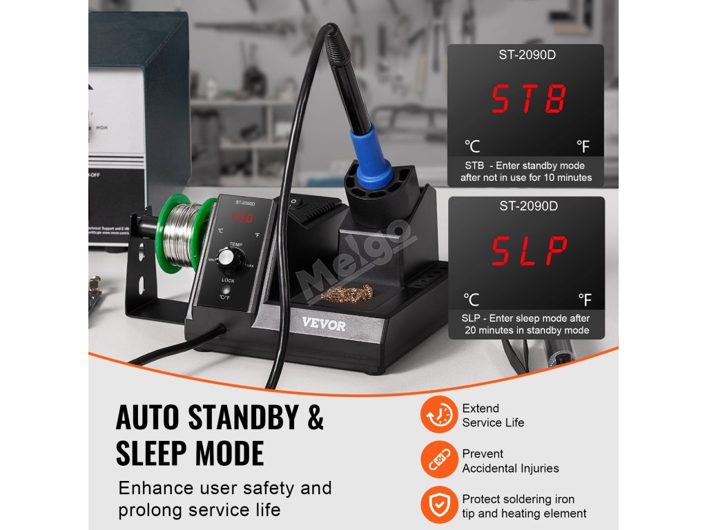 Automatický pohotovostní režim a režim spánku zajišťují bezpečnost vaší pájecí práce! Důmyslné funkce nejen chrání topné těleso a prodlužují životnost stanice, ale také pomáhají předcházet náhodným popáleninám a zajišťují bezpečnější a efektivnější pájení.