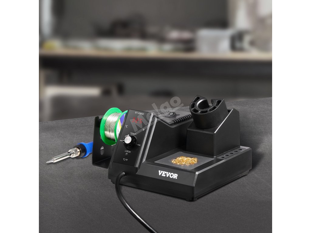 Toto pájecí pracoviště je vybaveno zásobníkem na pájku, který udržuje pájecí drát přehledně uspořádaný a snadno přístupný, a 5 univerzálními pájecími hroty, které lze snadno vyměnit a které vyhovují různým potřebám.