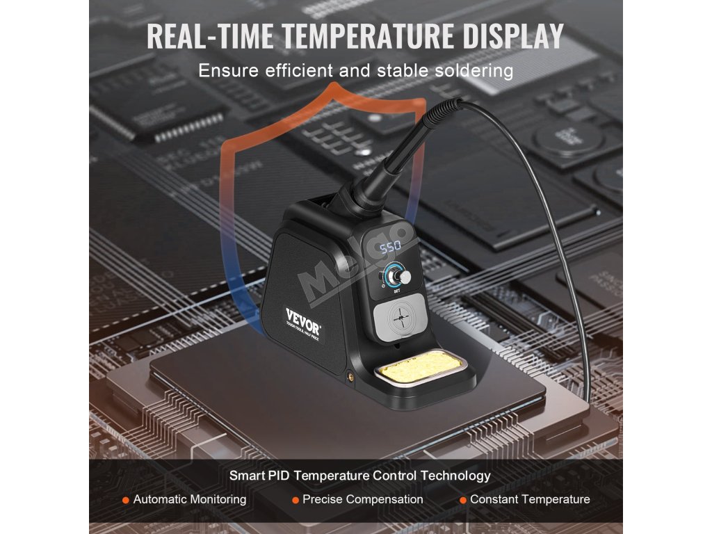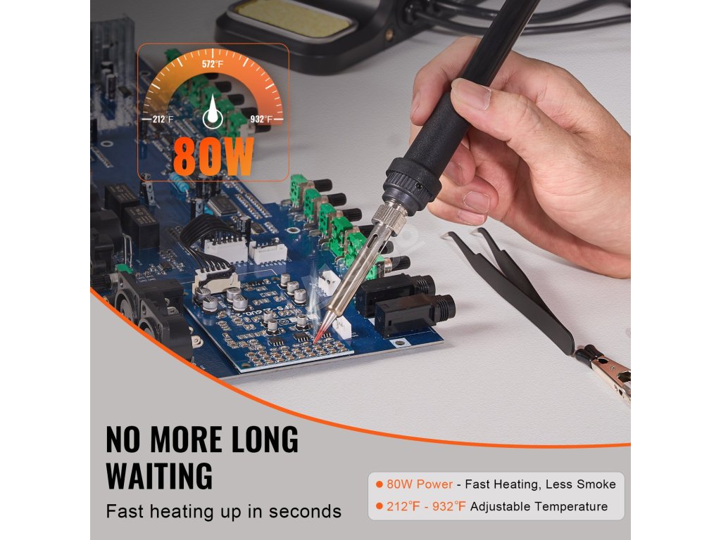 Inteligentní regulace teploty pro rychlejší a přesnější ohřev! Tato 80W pájecí stanice s vysokým výkonem, PID regulací teploty a nastavitelnou teplotou 212℉-932℉ zajišťuje efektivní pájení, ideální pro opravy desek plošných spojů, opravy šperků, projekty pro kutily atd.
