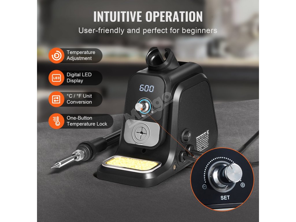Tuto digitální pájecí stanici lze zapnout a nastavit teplotu otočením knoflíku. Digitální LED displej umožňuje snadné nastavení teploty a přepínatelné režimy ℃/℉ zvyšují pohodlí - stačí ji zapojit a začít pájet!