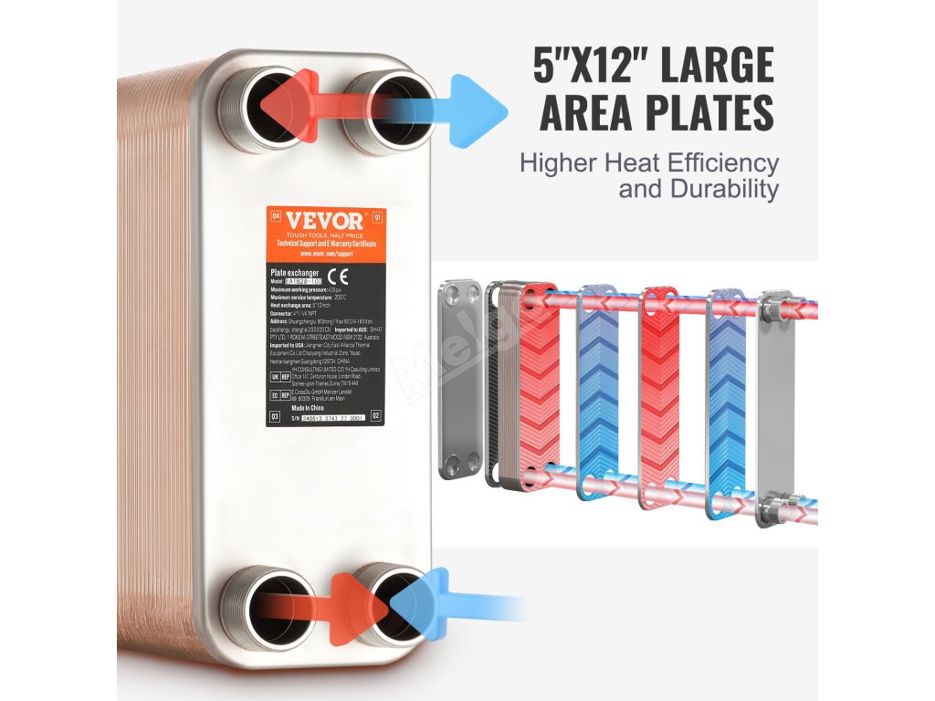 Náš výměník tepla je kompaktní a lehký a nabízí vynikající tepelný výkon. Je vyroben z nerezové oceli 316L a z 99 % z měděného pájení pro dlouhou životnost a je ideální pro solární ohřev, rekuperaci tepla z oleje, chlazení motorů a kondenzaci.