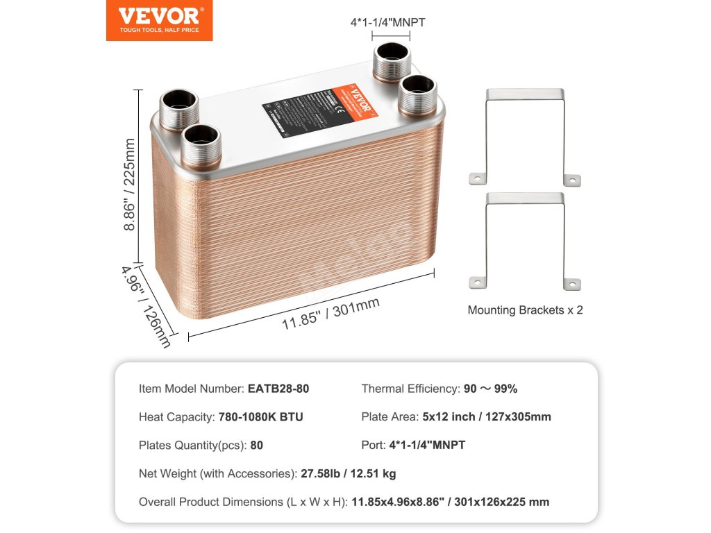 Náš výměník tepla má rozhraní 1 ¼" MNPT s hladkým závitem pro snadné a pohodlné připojení.