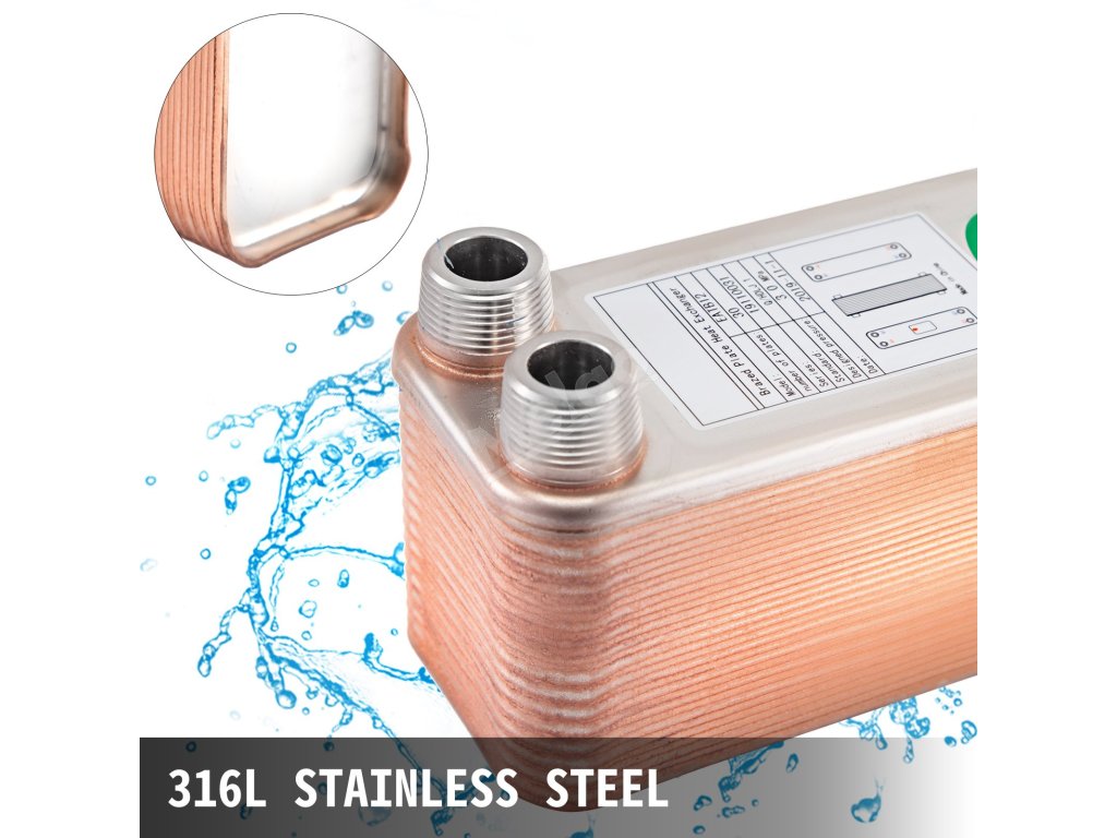 Pájený deskový výměník tepla nerez 316L, 30 desek, 3/4” mnpt