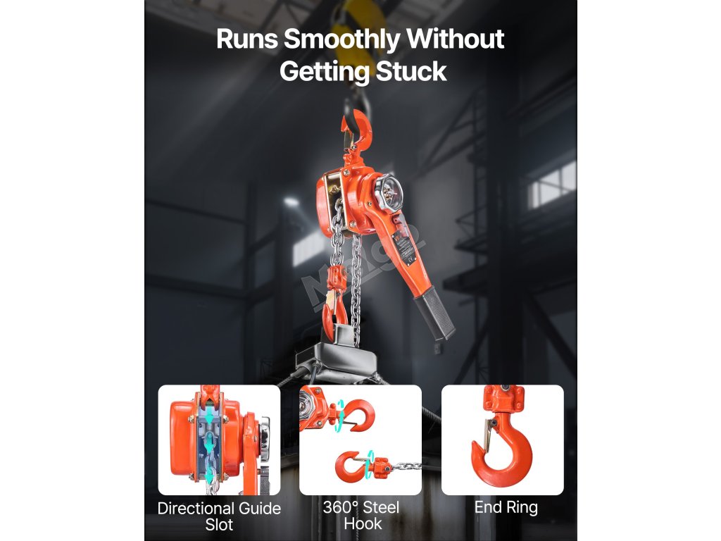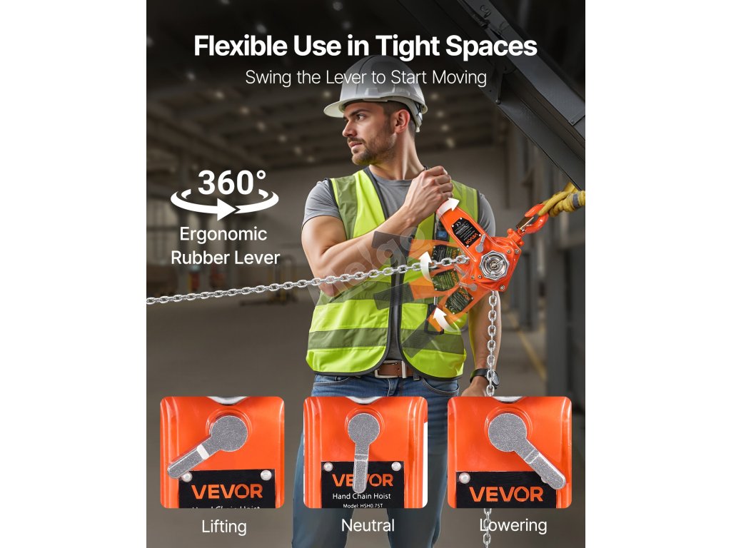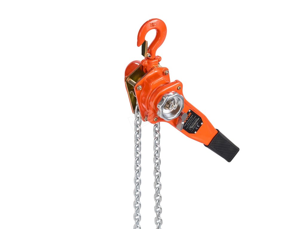 Pákový řetězový kladkostroj 3/4t 750kg zdvih 1.5m g80 brzda 360° háky