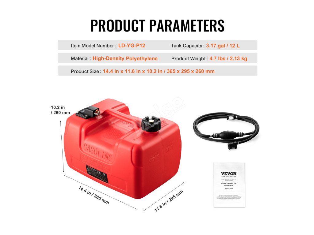 Palivová nádrž pro člun 3.17-gallon/12-l s hadicí 9.8ft, ukazatelem