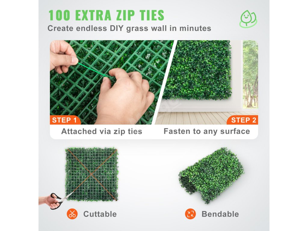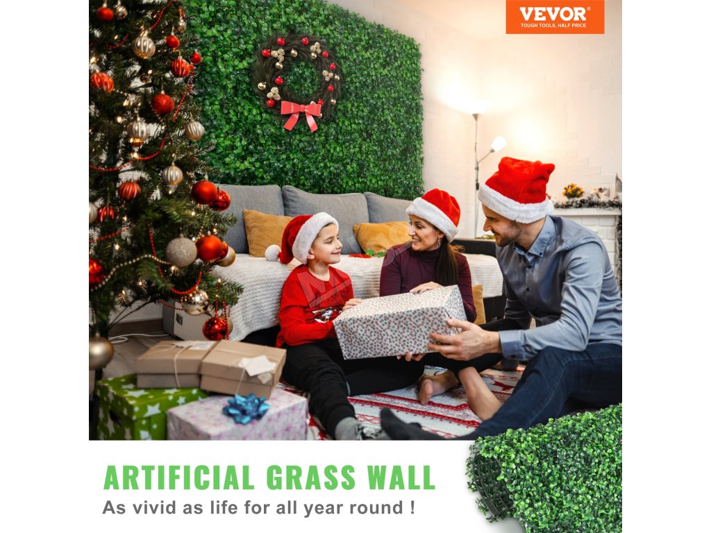 Vyrobte si DIY dekorace v interiéru i exteriéru s umělými panely ze zimostrázu VEVOR. Získáte tak nekonečně realistické travnaté stěny, takže si při každé příležitosti užijete jedinečnou bujnost a krásu. Naše travní stěna z PE je bez zápachu, odolná a má vysoce realistický estetický vzhled. Tak na co ještě čekáte? Nyní se připravte na radost ze zeleně!