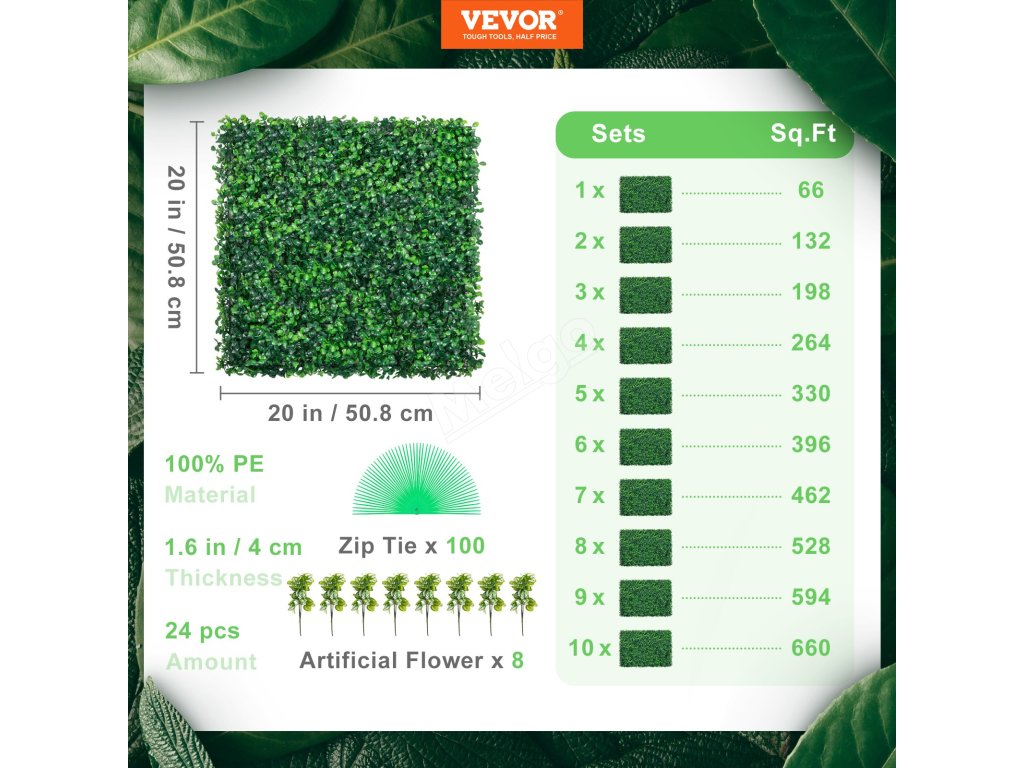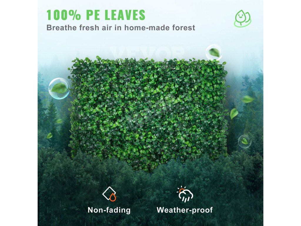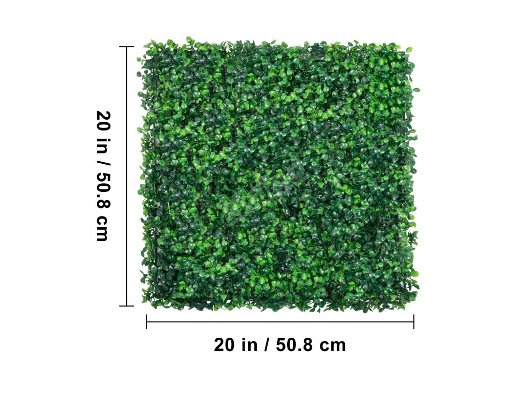 Velikost: 20'' x 20''. Náš umělý živý plot je vyroben ze 100% proenvironmentálního polyethylenu, který zaručuje dlouhou životnost bez vyblednutí.