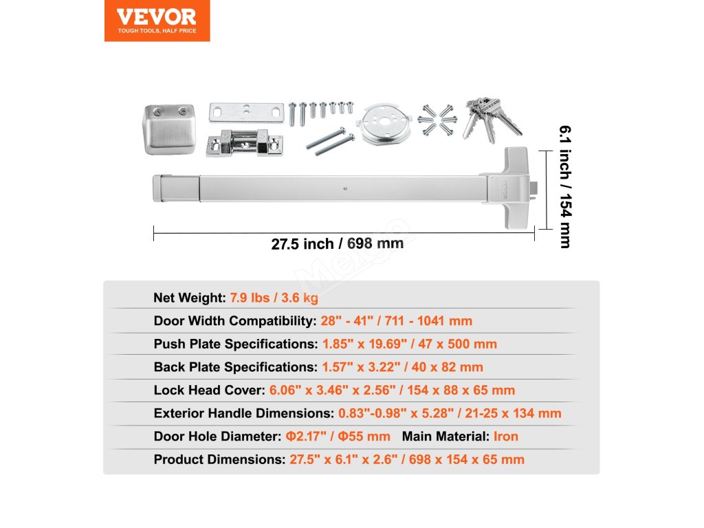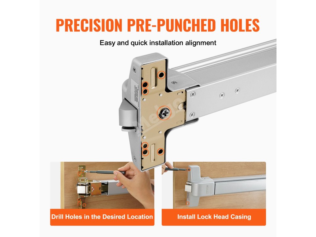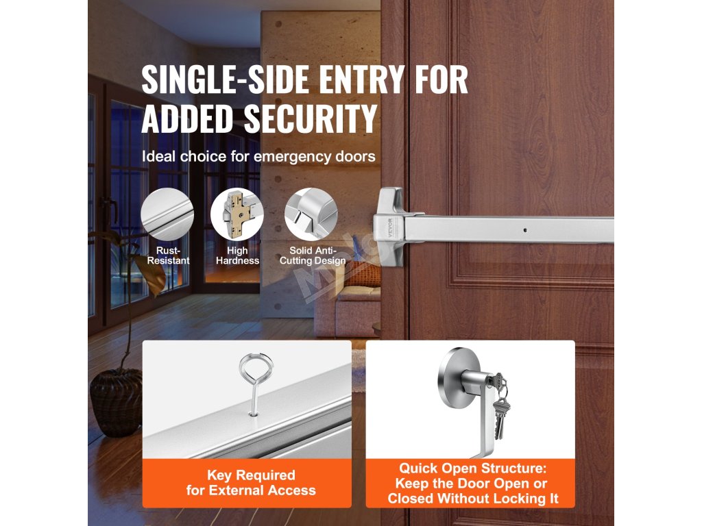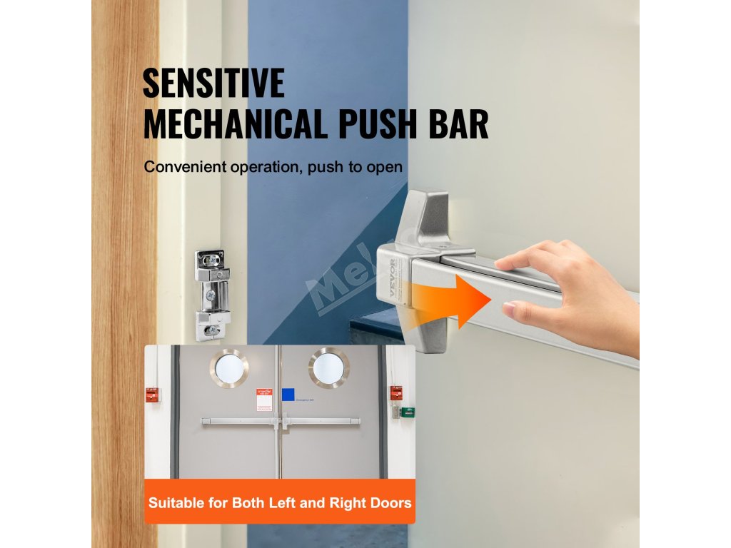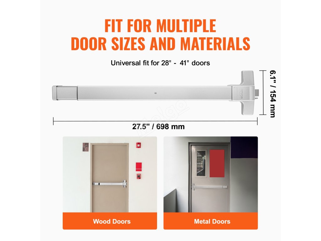 Naše tyčové zámky jsou kompatibilní s dřevěnými a kovovými dveřmi o šířce od 28" do 41" a jsou vhodné pro levé i pravé dveře. Snadné ovládání - dveře se otevírají pouhým zatlačením zevnitř. Splňuje zkušební normy UL a ANSI, což zajišťuje bezpečnost.