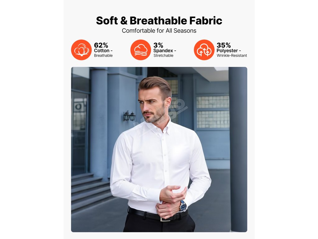 Díky směsi polyesteru a spandexu se tato pánská košile na knoflíky nemačká a zachovává si svěží tvar. Po vyprání ji stačí vyklepat - není třeba žehlit, což z ní činí časově úspornou volbu na služební cesty, dojíždění do práce nebo cestování.