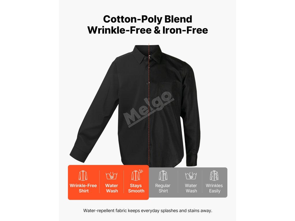 Díky směsi polyesteru a spandexu se tato pánská košile na knoflíky nemačká a zachovává si svěží tvar. Po vyprání ji stačí vyklepat - není třeba žehlit, což z ní činí časově úspornou volbu na služební cesty, dojíždění do práce nebo cestování.