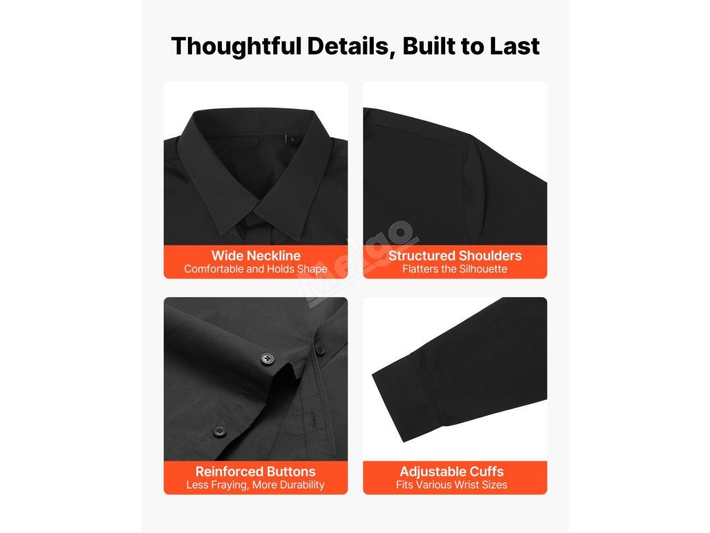 Tato košile se hodí pro širokou škálu příležitostí - od schůzek až po večeře. Černou košili můžete kombinovat se sakem, abyste vypadali profesionálně, nebo nosit bílou košili samostatně s džínami, abyste vypadali čistě a elegantně. Je to jedna z těch košil na knoflíky, po kterých budete sahat znovu a znovu.