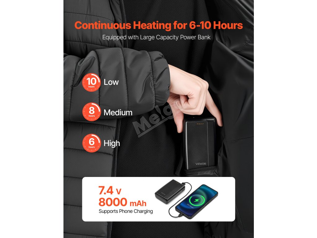 Nastavitelná kapuce, manžety a spodní lem poskytují ochranu proti větru a díky snadnému ovládání jedním tlačítkem a 8000mAh baterii je tato vyhřívaná bunda ideální pro každodenní použití.