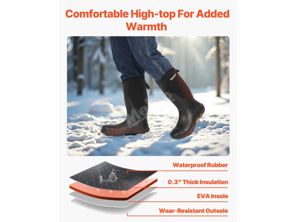 Vďaka zosilnenej izolačnej konštrukcii zostanú vaše nohy v teple a pohodlí aj v chladnej zime, čo uľahčuje zvládanie prostredia s nízkymi teplotami. Gumený zvršok a podrážka týchto topánok odolných voči škvrnám poskytujú komplexné pokrytie, vďaka čomu zostanú vaše nohy v suchu v blatistých alebo daždivých situáciách.