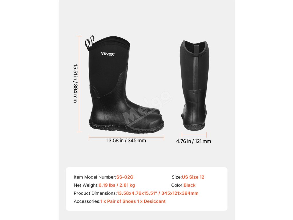 Pánské holínky s ocelovou špičkou, vodotěsné, protiskluzové velikost 12 US