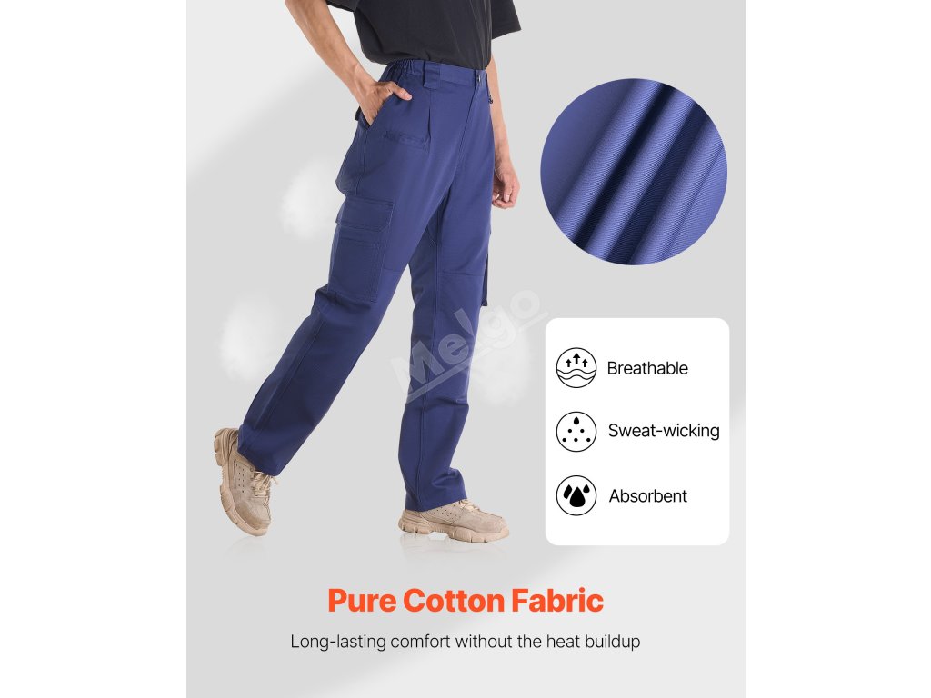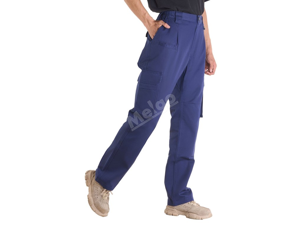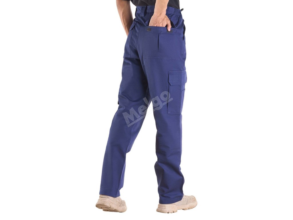 Pánské nehořlavé kalhoty tmavě modré 100% bavlna, cargo, elastický pas