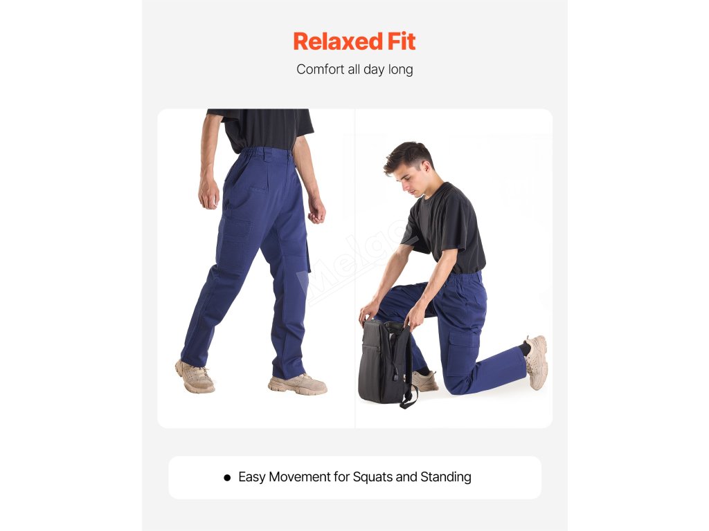 Tyto pánské nehořlavé kalhoty mají dvojitý pas s elastickým páskem a poutky na opasek, takže se přizpůsobí různým typům postavy a velikostem pasu. Střih si můžete upravit pomocí elastického pasu nebo poutka na opasek, což zvyšuje flexibilitu.