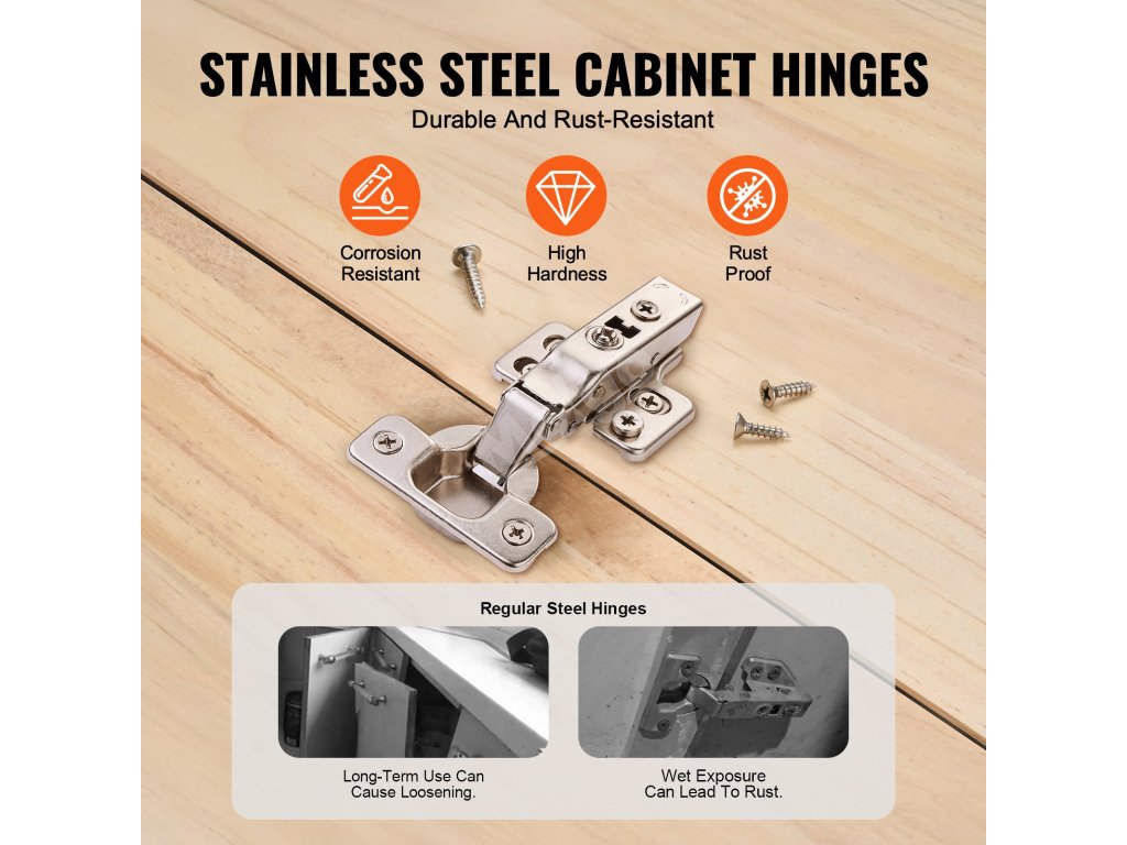Naše skrinkové pánty sú široko prispôsobené pre všetky druhy dvierok skriniek. Zabudovaný tichý tlmič účinne znižuje hluk pri zatváraní dvierok a chráni skrinku pred nárazmi. Vysokokvalitná nehrdzavejúca oceľ, ktorá zaručuje odolnosť a dlhú životnosť pántov vo vlhkom prostredí.