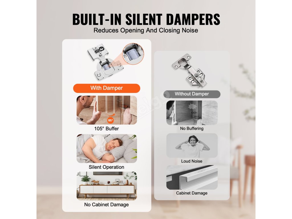 Zabudovaný tlmič má funkciu mäkkého zatvárania, vďaka ktorej je každé otvorenie a zatvorenie hladké, s jemným odrazom a bez hluku, zabraňuje stlačeniu, poskytuje bezpečnosť pre členov rodiny, účinne znižuje náraz dverí a predlžuje životnosť.