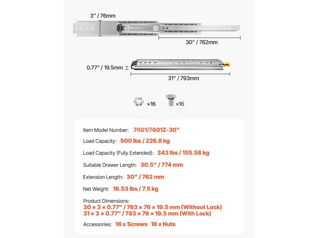 Tyto zásuvkové kolejnice vyrobené z vysoce kvalitní oceli mají vysokou tvrdost, velkou stabilitu a odolnost. Pracují se správným uložením a nízkou hlučností. Jsou dodávány s podrobnými vodítky a praktickými šrouby. Jsou ideální pro ukládání do skříní, průmyslových zásuvek, komerčních zařízení, upravených vozidel atd.
