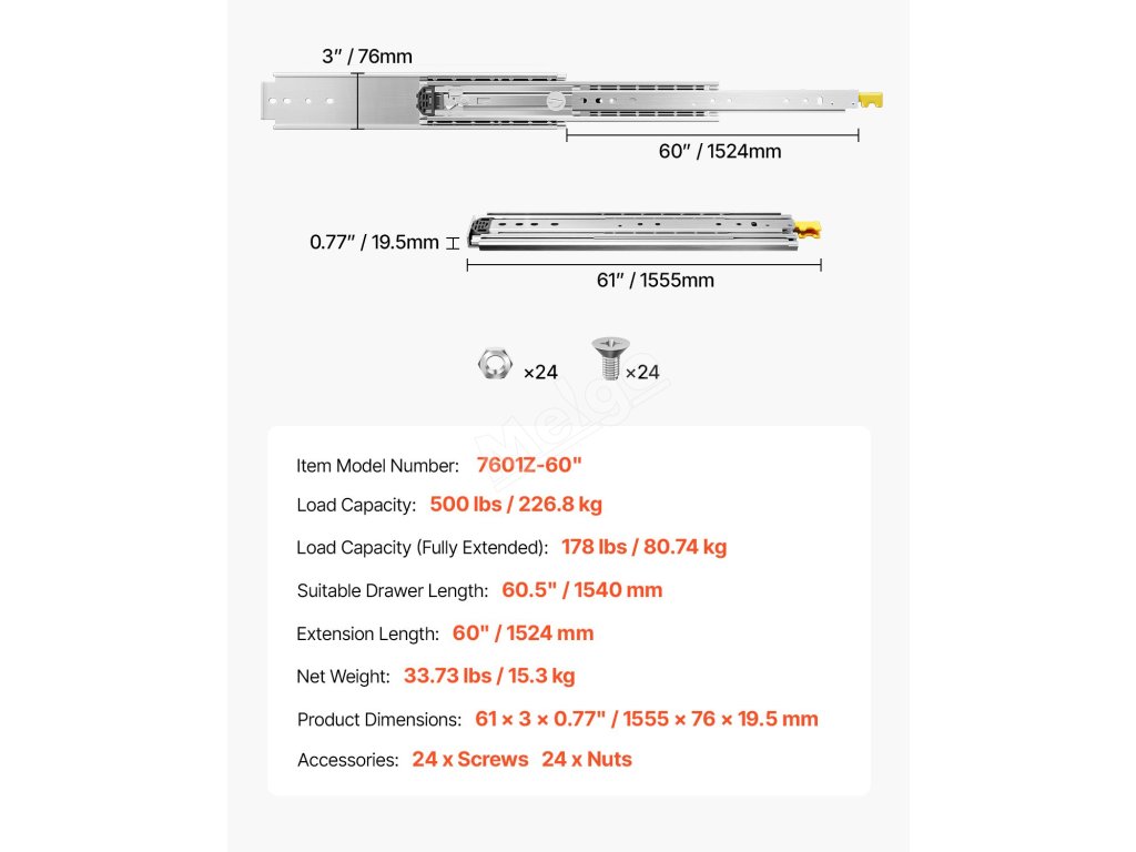| Dĺžka výsuvu | 60" / 1524 mm |