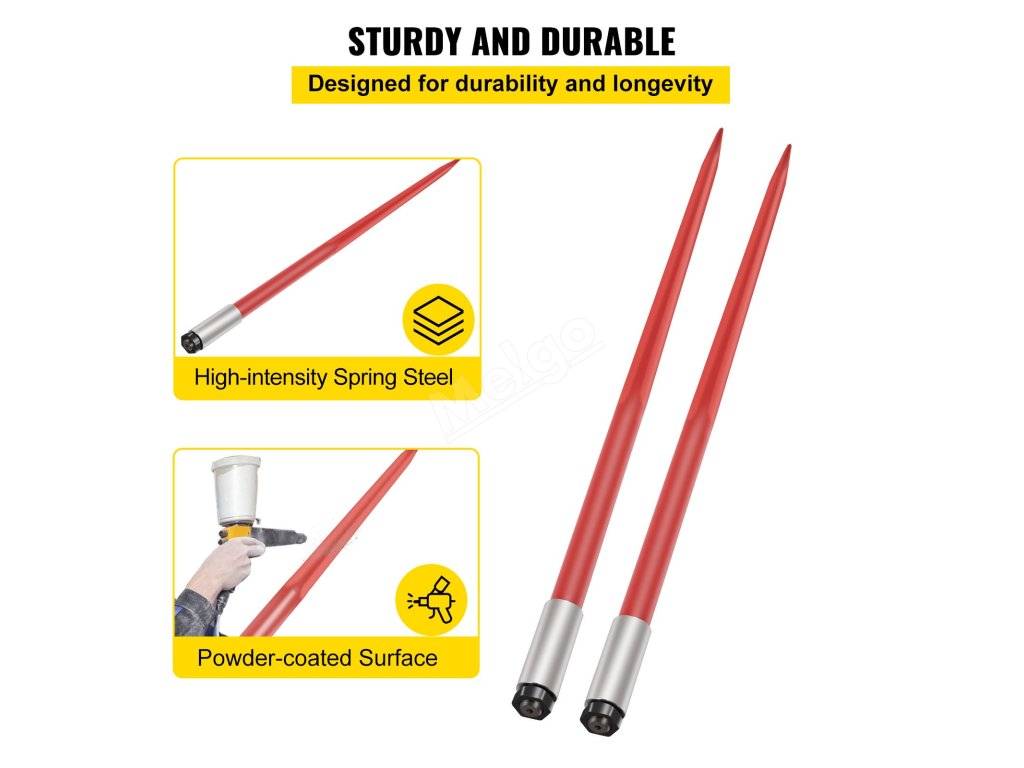 Naše oštěpy na balíky jsou dlouhé 49 palců. Je navržen se čtvercovou násadou a zúženým ostrým hrotem pro maximální pevnost. Dokáže přemístit balíky sena jakékoli velikosti.