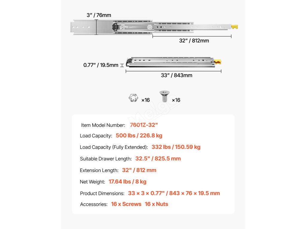 Tyto zásuvkové kolejnice vyrobené z vysoce kvalitní oceli mají vysokou tvrdost, velkou stabilitu a odolnost. Pracují se správným uložením a nízkou hlučností. Jsou dodávány s podrobnými vodítky a praktickými šrouby. Jsou ideální pro ukládání do skříní, průmyslových zásuvek, komerčních zařízení, upravených vozidel atd.